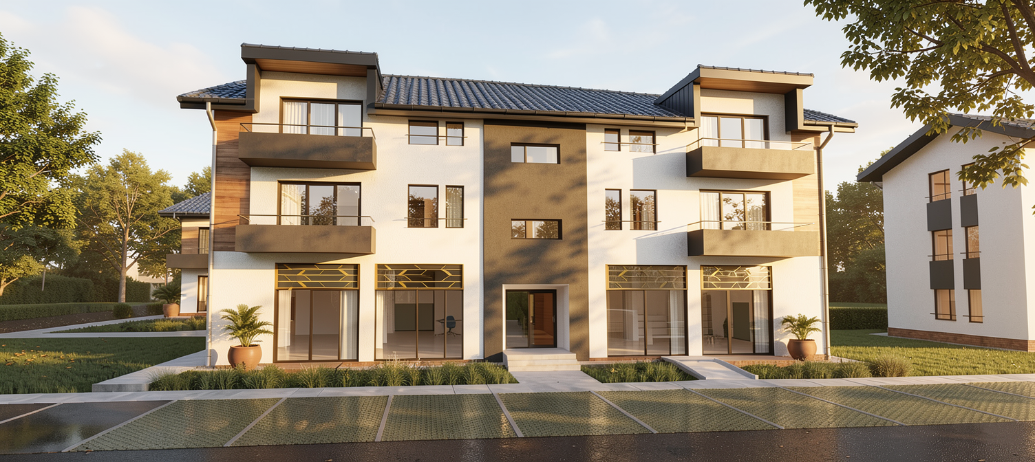 important preserve the existing geometry and the existing context exactly as provided do not modify alter reinterpret add remove scale or reshape any geometry do not change the site surroundings street layout neighboring buildings vegetation or context elements do not modify geometry scale proportions buildings road layout sidewalks or surrounding context in any way do not modify text delete all people