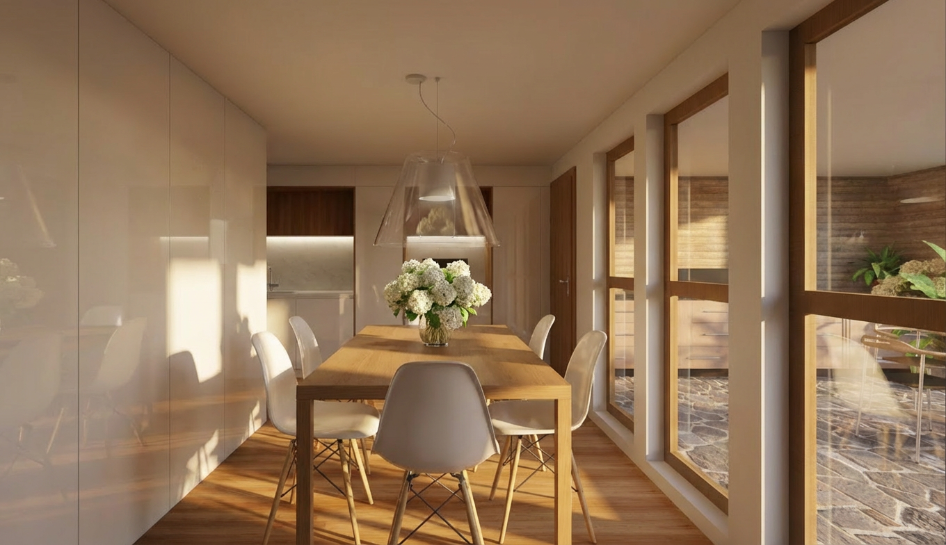 add white hydrangea flowers on the table moody light foggy and sunny light from the windows white cabinets in high gloss do not change cabinets nor add open shelves don t add new cabinets