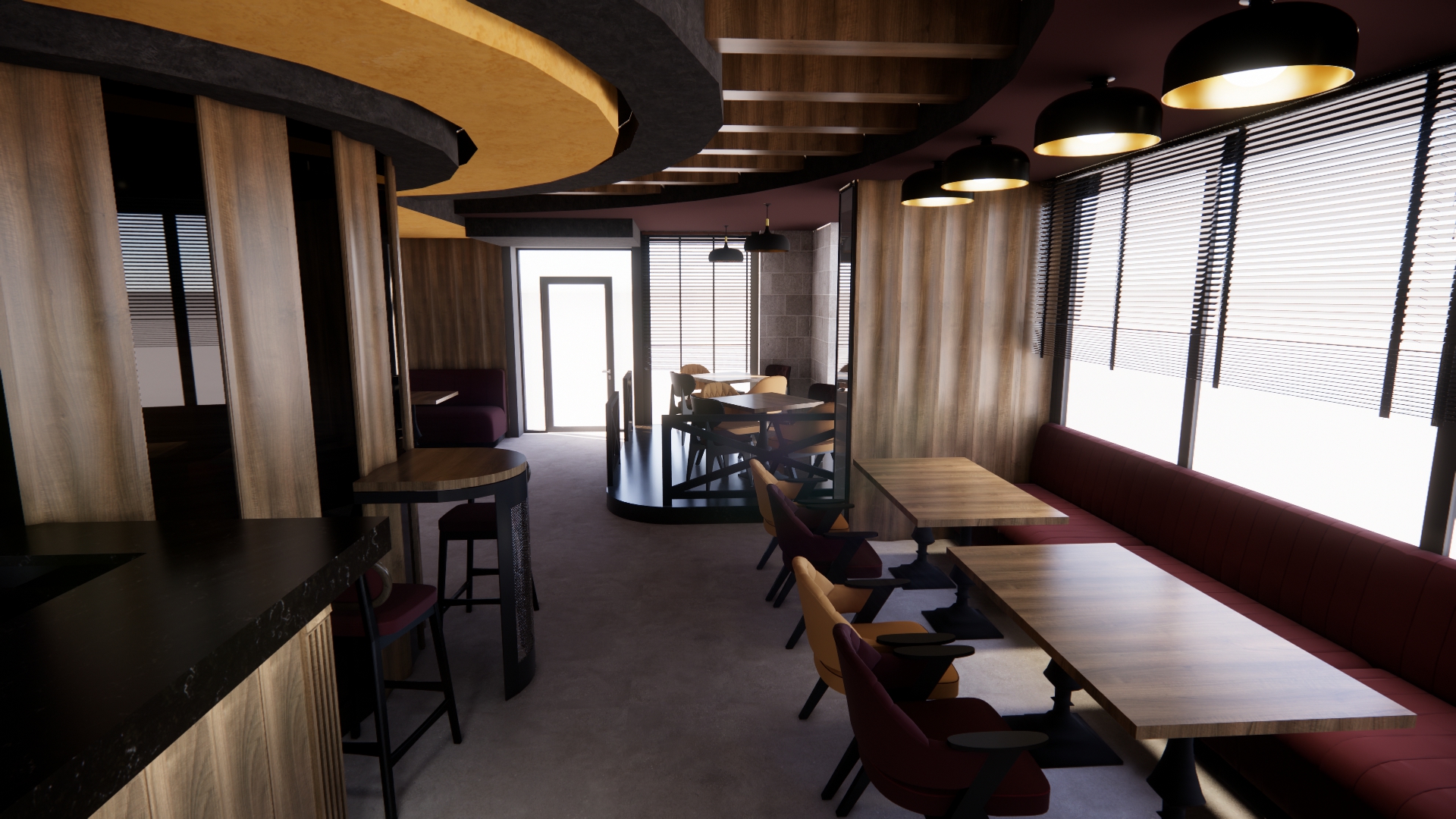 ultra realistic restaurant interior render preserve original color palette exactly no color changes enhanced realism and material detail natural textures with depth wood stone fabric realistic lighting with warm ambient glow soft shadows and balanced highlights cinematic light bounce global illumination physically accurate materials pbr lifelike reflections depth of field cozy and inviting atmosphere high dynamic range photorealistic 8k resolution