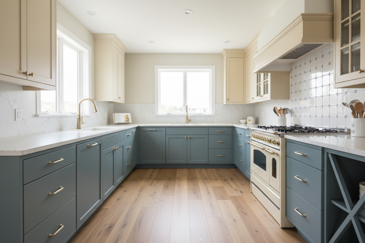photo realistic render elegant home high green hedges fence widen the left side of the road lighting effects award winning overcast slate roofing wet road