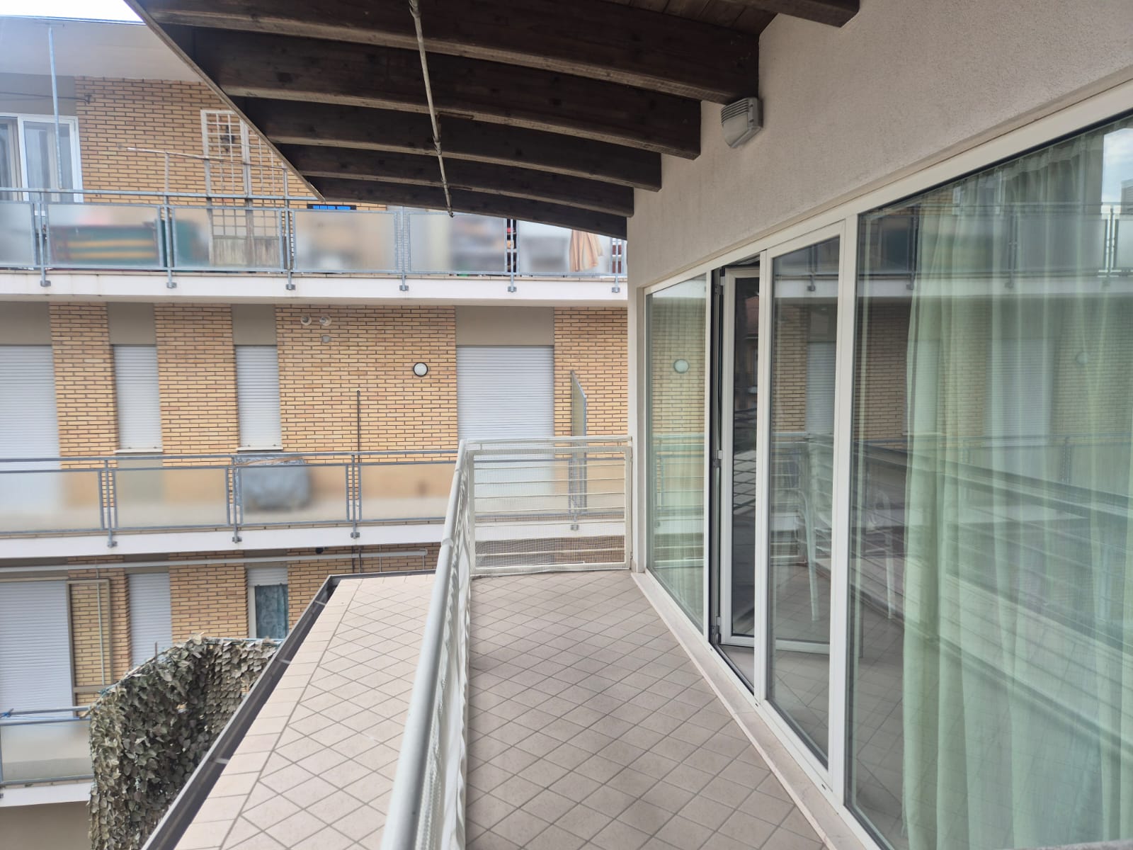 sposta la ringhiera del balcone in primo piano verso destra vicino alla vetrata