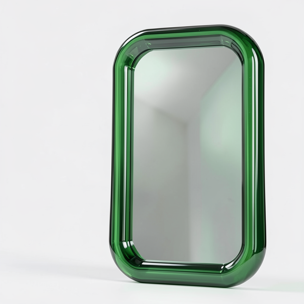 turn this elevation into a rendered 3d view the makeup mirror section with the tile is set back further by 2 than the wall on the left the wood is more of an oak than walnut the vanity on the left is a section cut so it needs ot come out a lot further there is no natural light on the right the only light source is the window on the left keep the tile texture the same and the wood color the same as the elevation the flooring is a white fossilized tile floor with a 4 tile base of the flooring