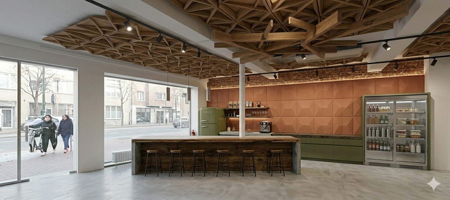 a clean minimal and highly curated interior design moodboard with a strong scandinavian and architectural aesthetic the composition is very calm structured and reduced focusing on clarity and material quality rather than decoration all materials are arranged neatly next to each other in a precise grid or aligned layout with consistent spacing the composition is flat and frontal with no perspective distortion the background is a soft neutral tone warm off white or light beige creating a calm and premium base the material palette includes natural wood warm oak and darker tones stone or concrete surfaces matte tiles subtle metal elements brushed steel or black and warm earthy accents such as terracotta colors are muted and harmonious warm neutrals soft greens earthy reds and natural textures no dramatic lighting no strong shadows no gradients and no decorative styling the lighting is soft even and diffused almost shadowless like in a professional design studio or architectural sample board no objects like furniture or lifestyle elements only pure material samples everything feels intentional balanced and quiet style scandinavian interior design architectural material board minimal clean high end tactile curated calm premium