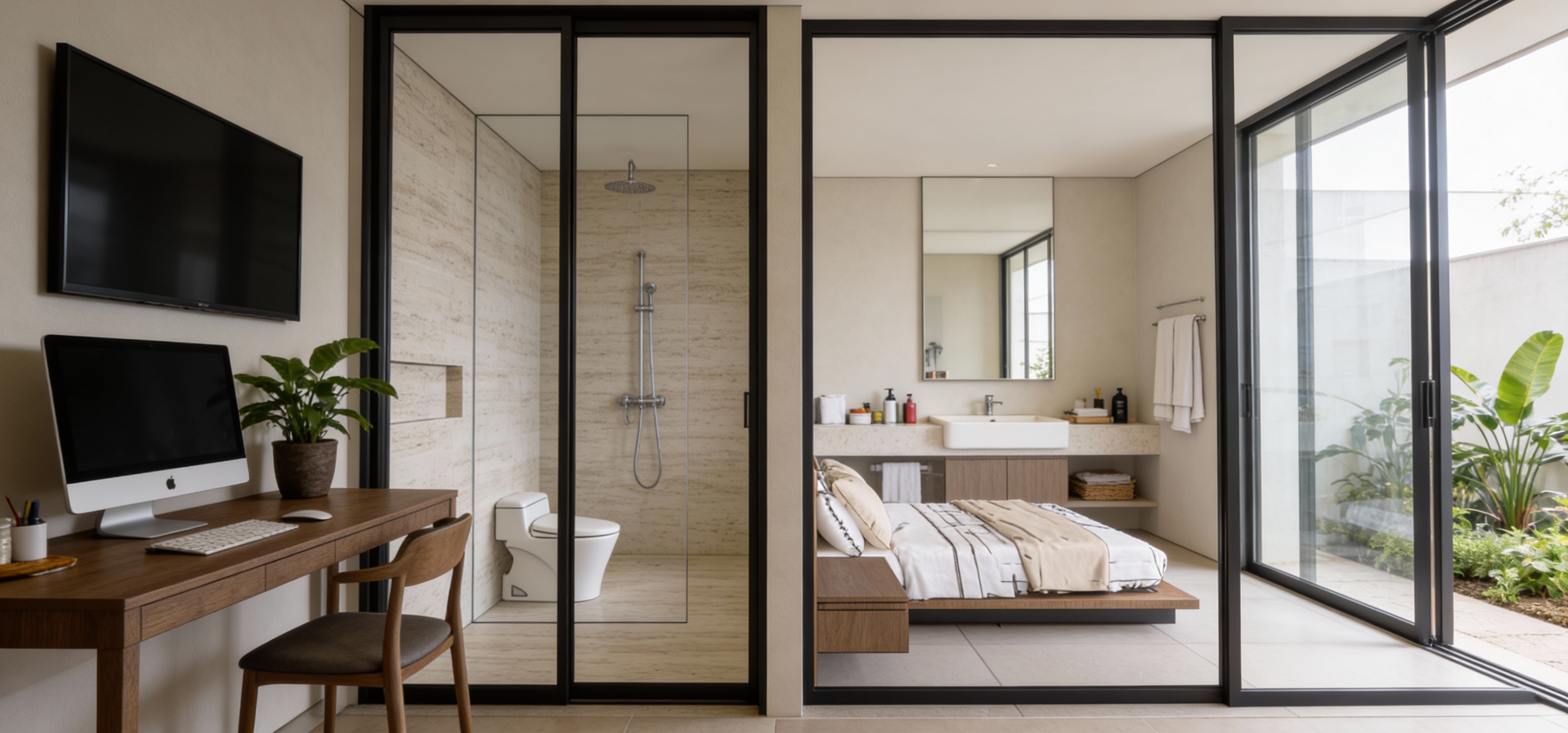 late afternoon lighting with some lights on inside the house add a waterfall effect to the infinity edge of the swimming pool add plants and grasses and trees native to malibu california add some people sitting at the fire pit add some people standing on the balcony add a woman swimming laps in the pool add some people on the chaise lounges and around the pool