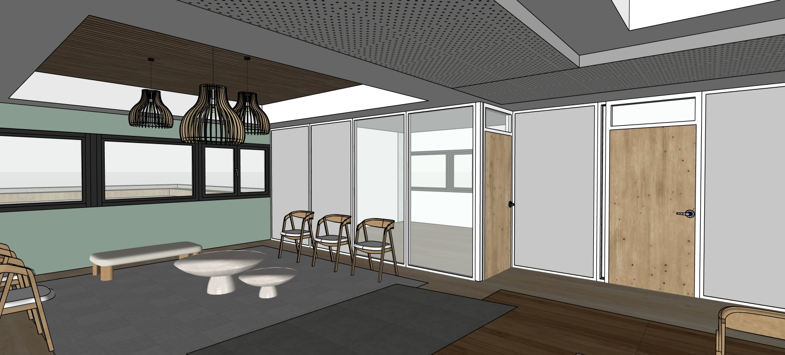 respecter les cloisons gris clair mat et les cloisons vitr es ne pas rajouter de spots garder le mur vert les cloisons grises sont opaque et ne sont pas r fl chissantes