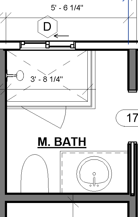 exterior shot make me a transitional bathroom with large format tile light color walls and ceiling height is 8 foot