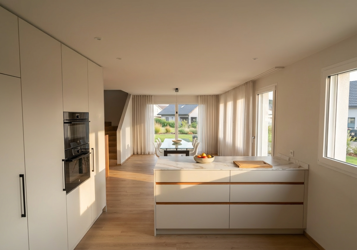 do not change the cabinets in any way preserve the exact cabinet colors materials finishes dimensions door and drawer styles hardware spacing alignment and all geometry exactly as shown do not alter the countertop shape backsplash appliances flooring lighting fixtures or wall structure only remove the construction materials clutter and mess from the scene clean the room and make it look finished and staged add a few simple tasteful home accessories appropriate for the style of the space but do not add or remove any furniture windows or architectural elements maintain the original lighting direction and realism enhance clarity and polish the photo while keeping the cabinetry and room design completely unchanged do not alter the lighting to keep the cabinet colors as they are in the image keep the white background just make it look realistic