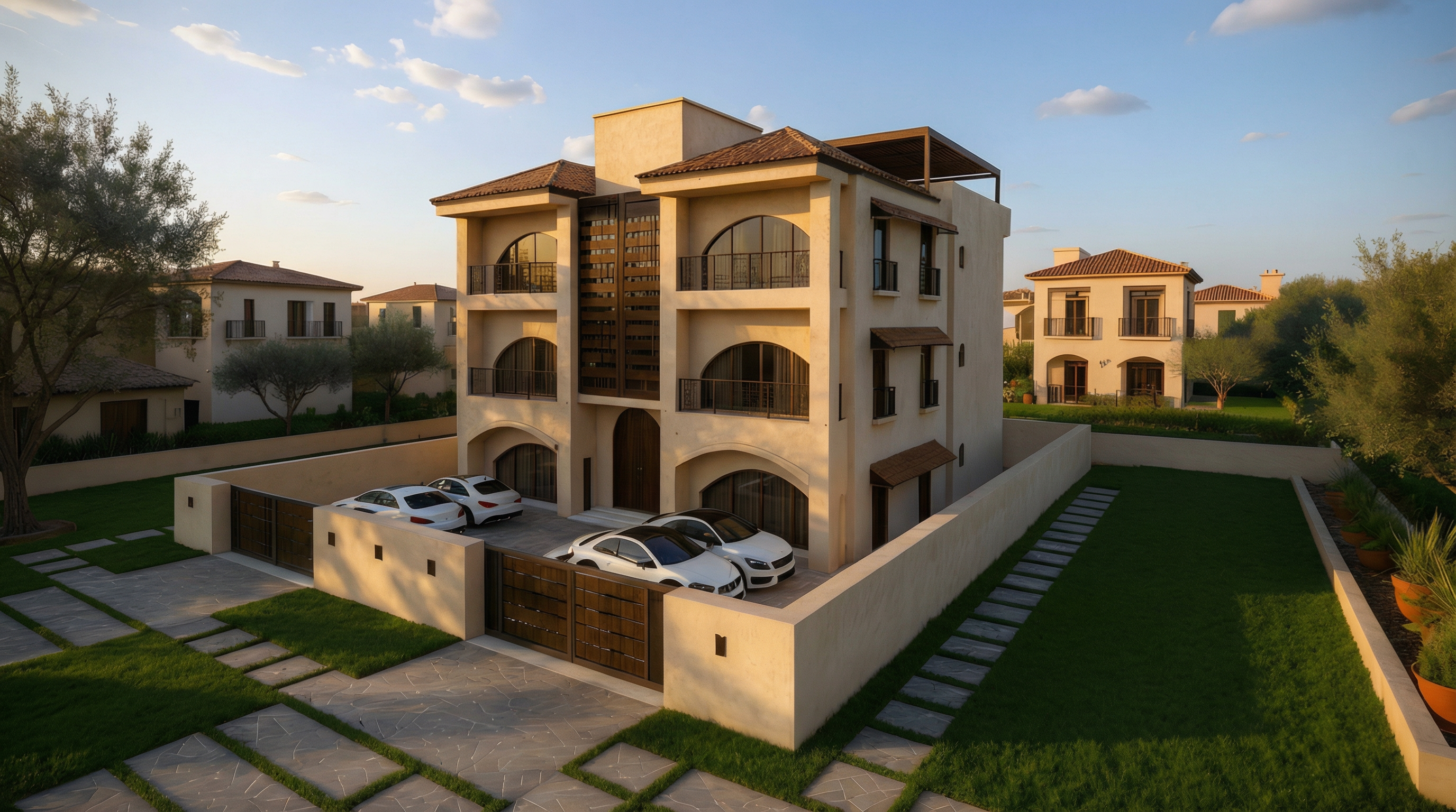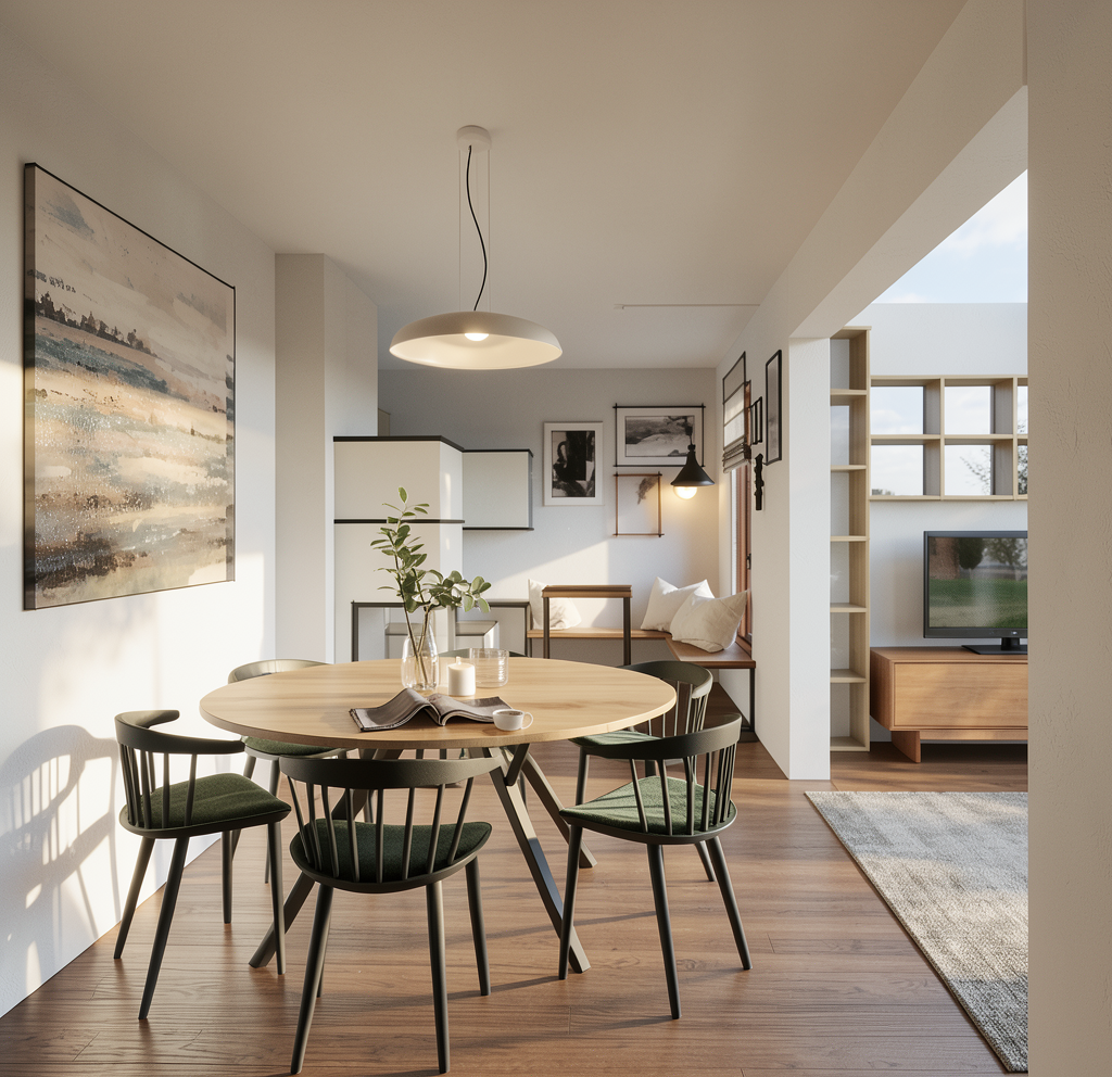 maintain all colors natural daylight from behind and left turn lights on table top and small wall cabinet are textile beige from egger big cabinet and bed ends are sage green from egger make as photorealistic as possible