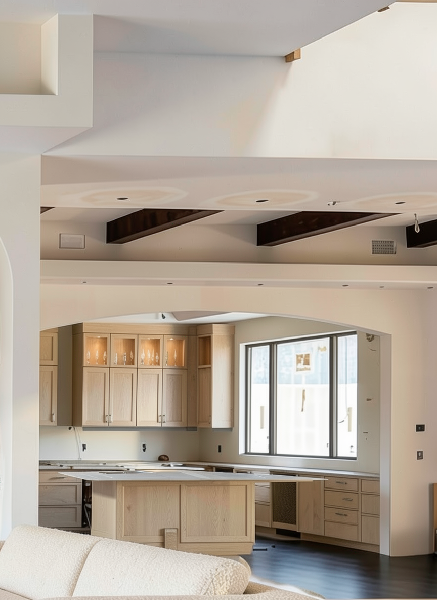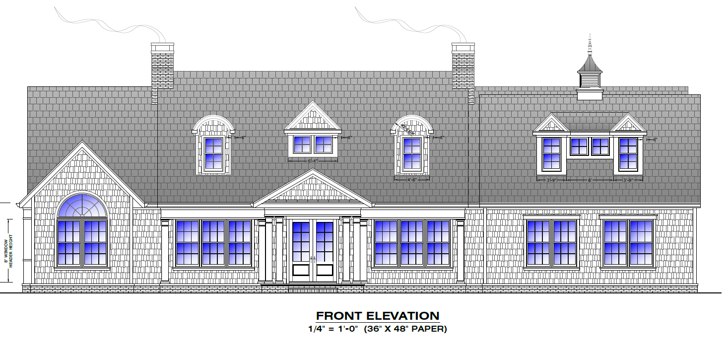 use the uploaded architectural drawings as reference to generate a realistic 3d exterior rendering of the house the first image is the front elevation and should define the primary fa ade proportions and architectural details the second image is the partial left elevation showing the side load three car garage and left side of the house the third image is the roof plan which should be used to understand the overall roof geometry and l shaped footprint created by the side load garage wing combine these three drawings to reconstruct a coherent 3d model of the home architectural style traditional coastal cedar shake shingle style home with classic detailing key features to maintain symmetrical front entry with classical columns and pediment cedar shake siding steep gable roofs with dormers arched feature window on the left front three dormers on the front roof two brick chimneys side load garage wing forming an l shape cupola centered above the garage stone or brick foundation base render the house in realistic materials and lighting while maintaining the proportions from the drawings
