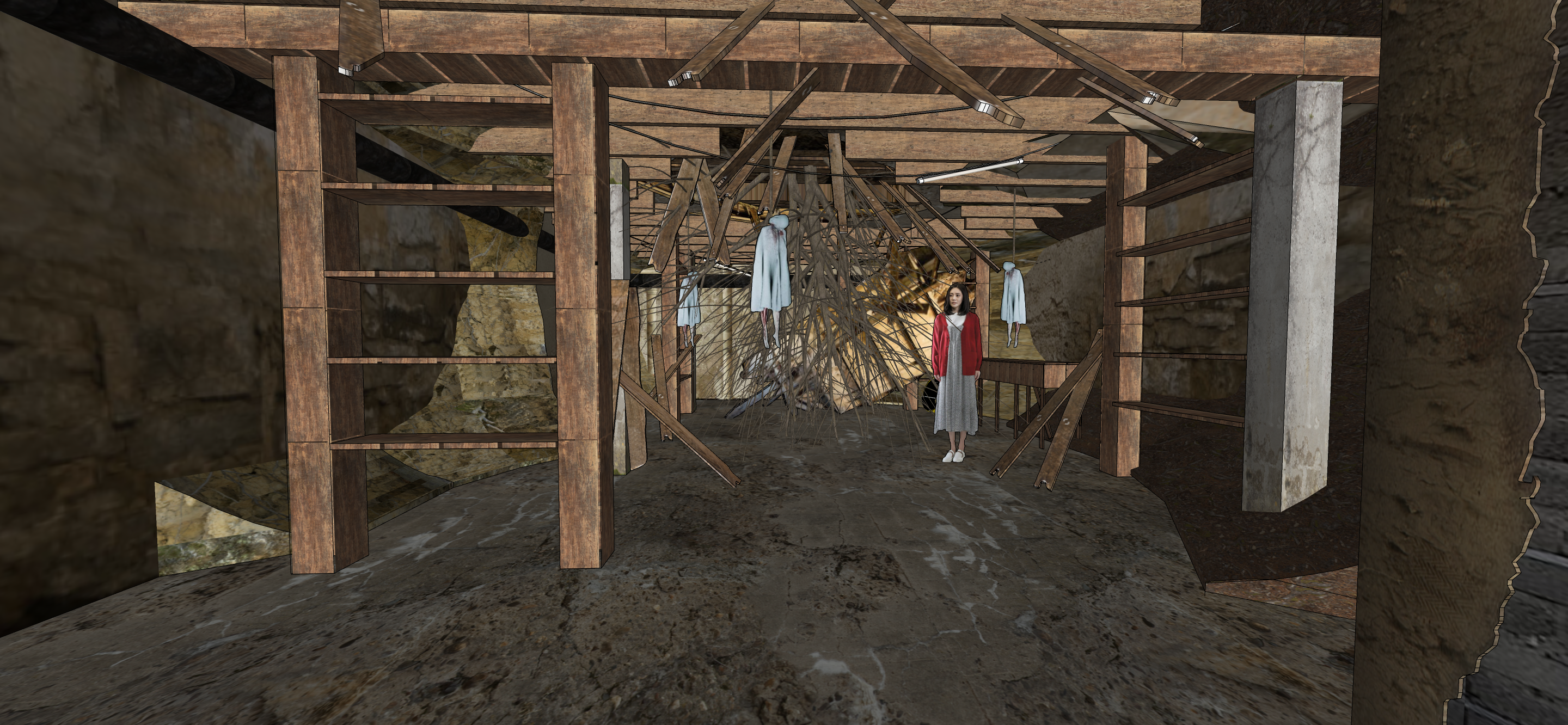 it is piled up with dirt it is an underground storage there is almost no light
