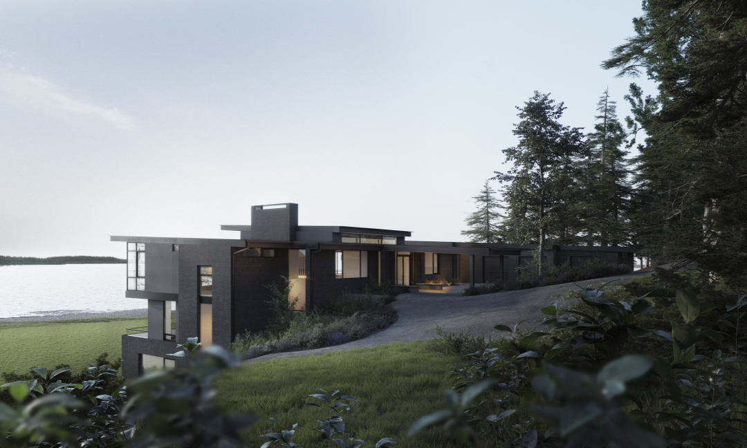 same image but with about 8 inches of snow covering covering everything and snow falling