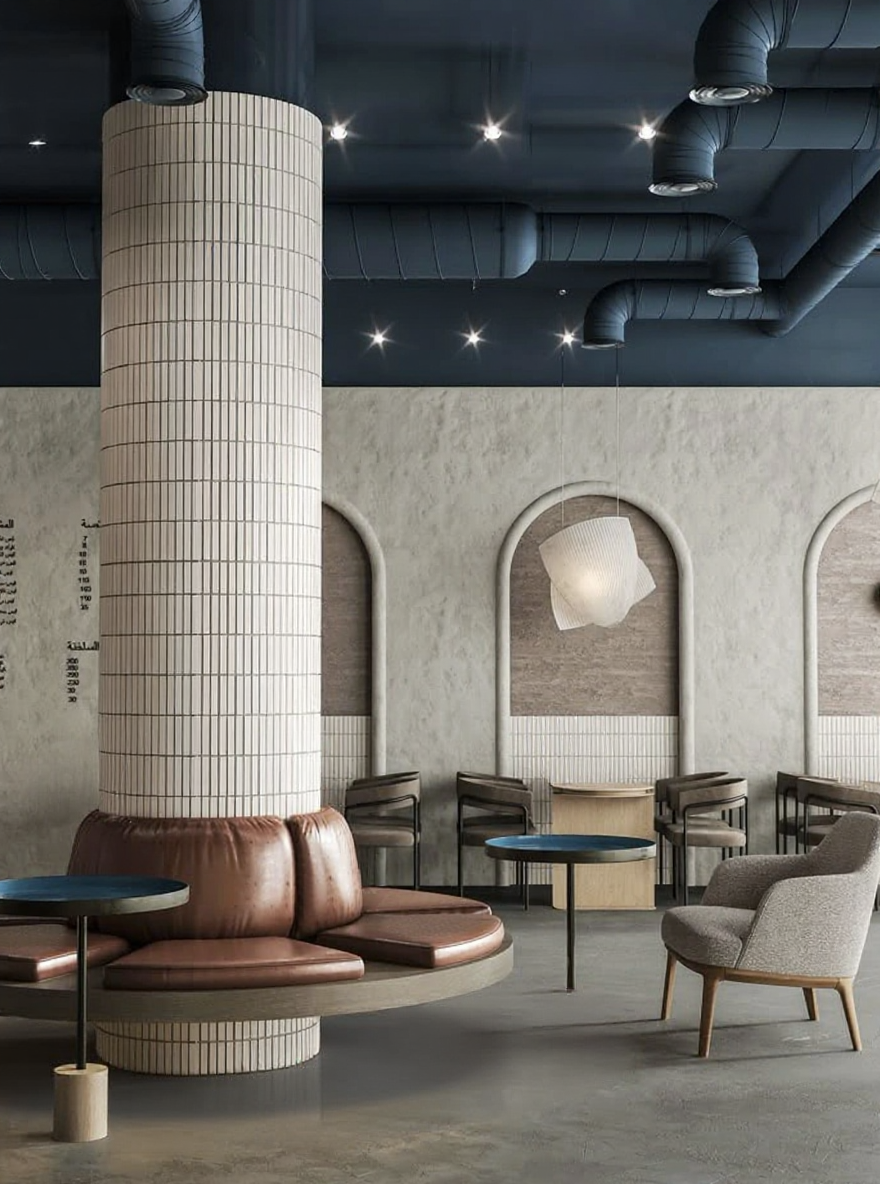 photorealistic render generated from the provided sketchup 3d image as a reference strictly respect the original geometry volumes proportions architecture and all furniture visible in the source image the project represents a classy high end vip lounge located inside a football stadium the space is fully enclosed immersive and has absolutely no exterior light source there is no natural light in this render there is no sunlight no daylight no sky light and no light coming from outside the space the environment must read as a fully interior space with zero exterior illumination all lighting must be 100 artificial any openings windows or colored shapes visible in the reference image must not emit light and must not suggest any exterior brightness artificial lighting must be warm soft and indirect it should enhance volumes and materials without overexposure the lighting must create a refined elegant high end lounge atmosphere the golden and warm feeling must come only from artificial lighting color temperature and light reflections never from material changes or exterior light do not recolor materials do not replace materials with gold metallic or golden textures all original materials visible in the sketchup image must be preserved the golden ambiance must be subtle and atmospheric resulting only from warm artificial light interacting with the existing materials strictly preserve the original material colors color tones coming from the sketchup image textures must be interpreted in a realistic high quality premium way while keeping the exact original colors and material identities unchanged fully respect the color coding system present in the reference image all furniture visible in the sketchup image must be kept exactly as is no furniture decorative objects lighting fixtures screens or architectural elements may be added removed or modified except where explicitly stated below behind the bar on the main column visible in the reference image bottles must be placed on the existing shelves these bottles must be realistic bar bottles glass bottles premium spirits neatly arranged proportional and consistent with a high end lounge atmosphere bottles must appear only on the shelves of the main column behind the bar no bottles may be added elsewhere in the space color coded areas are strict functional placeholders and must be interpreted exactly as follows with no alternative interpretation any orange colored area represents a mirror including rectangular shapes curved shapes concave forms or any other geometry all orange areas must be replaced exclusively by realistic mirrors with reflections consistent only with artificial interior lighting any green colored area represents a television screen and must be replaced exclusively by a realistic tv screen displaying football related content such as a live match broadcast replays or stadium atmosphere archsynth must take no artistic freedom beyond what is explicitly requested do not add anything that is not clearly specified in this prompt or visible in the original sketchup image no people no implied objects no additional elements final render must be clean realistic elegant strictly controlled and clearly convey the feeling of a premium classy vip lounge with a warm golden atmosphere created exclusively by artificial lighting