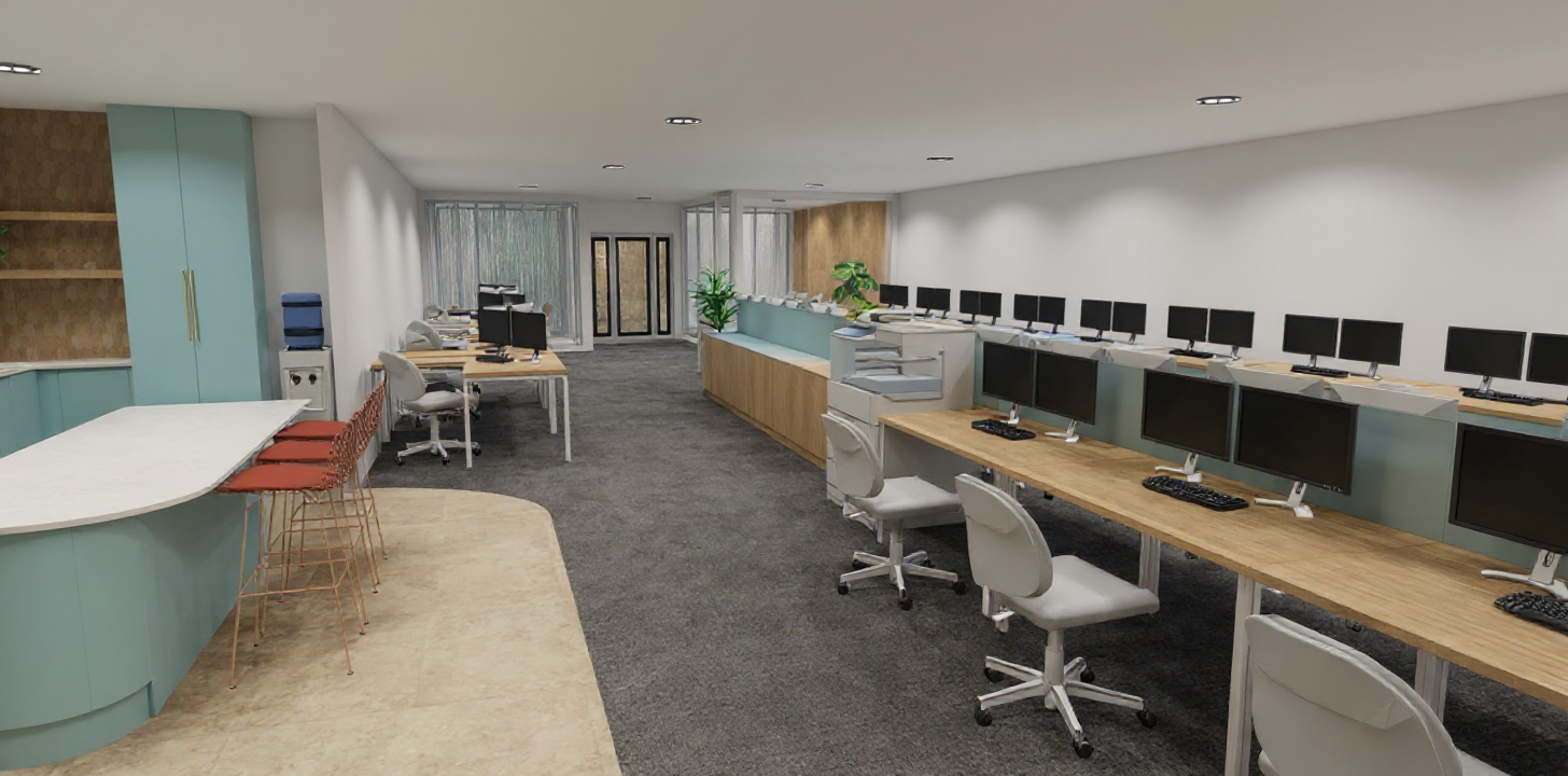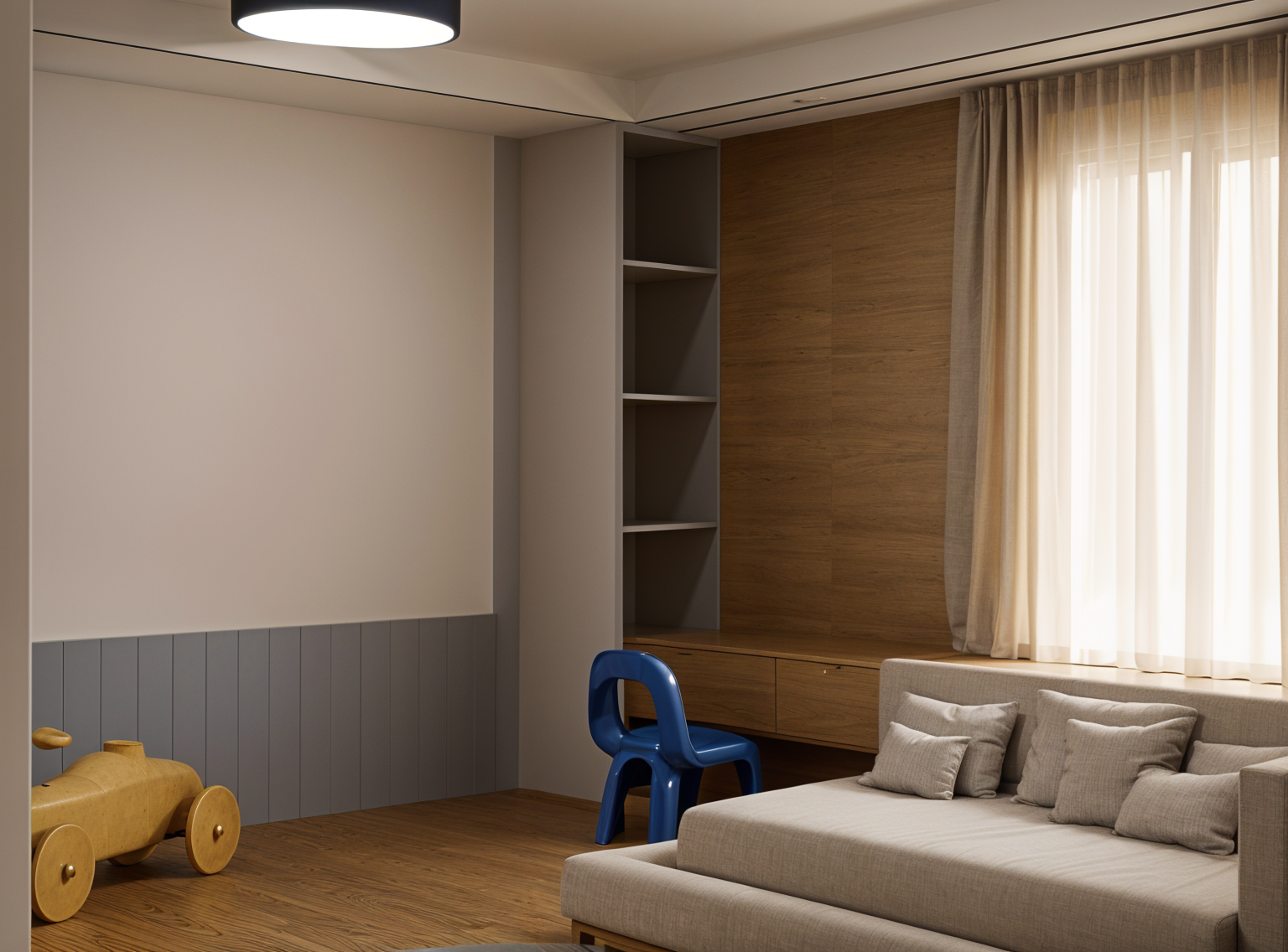 a modern two story house with a minimalist design the siding is a sophisticated charcoal gray with contrasting light gray for the smaller siding panels the windows are black with trim that matches the siding color the roof is a matte black complementing the overall color scheme the atmosphere is serene and contemporary set against a clear blue sky to provide a bright and welcoming feel with soft natural lighting highlighting the architectural lines and textures creating a harmonious and inviting ambiance low mountains in the background shrubs around the perimeter nice green grass lawn