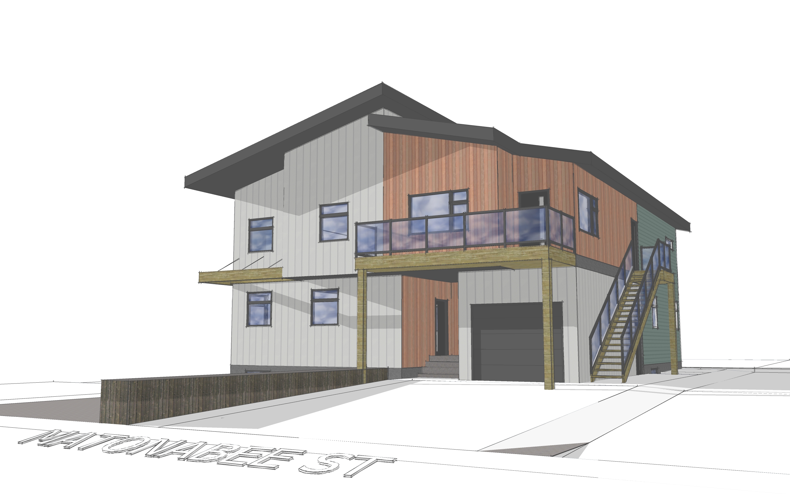 modernist exterior shot add realism and texture to this duplex in yellowknife nt finish the siding and roofing where you show a yellow door should be an overhead garage door architecture