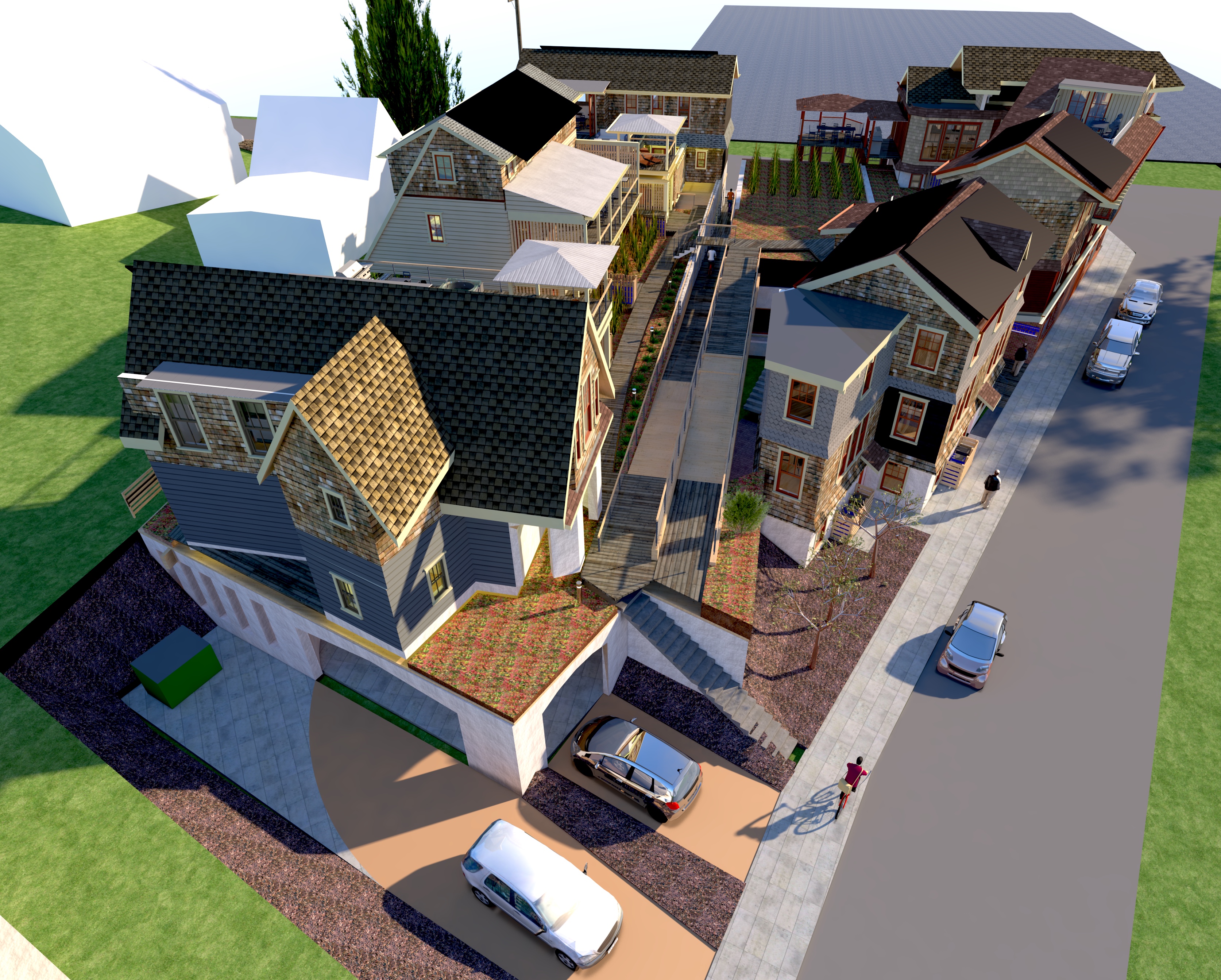 and trees people and cars