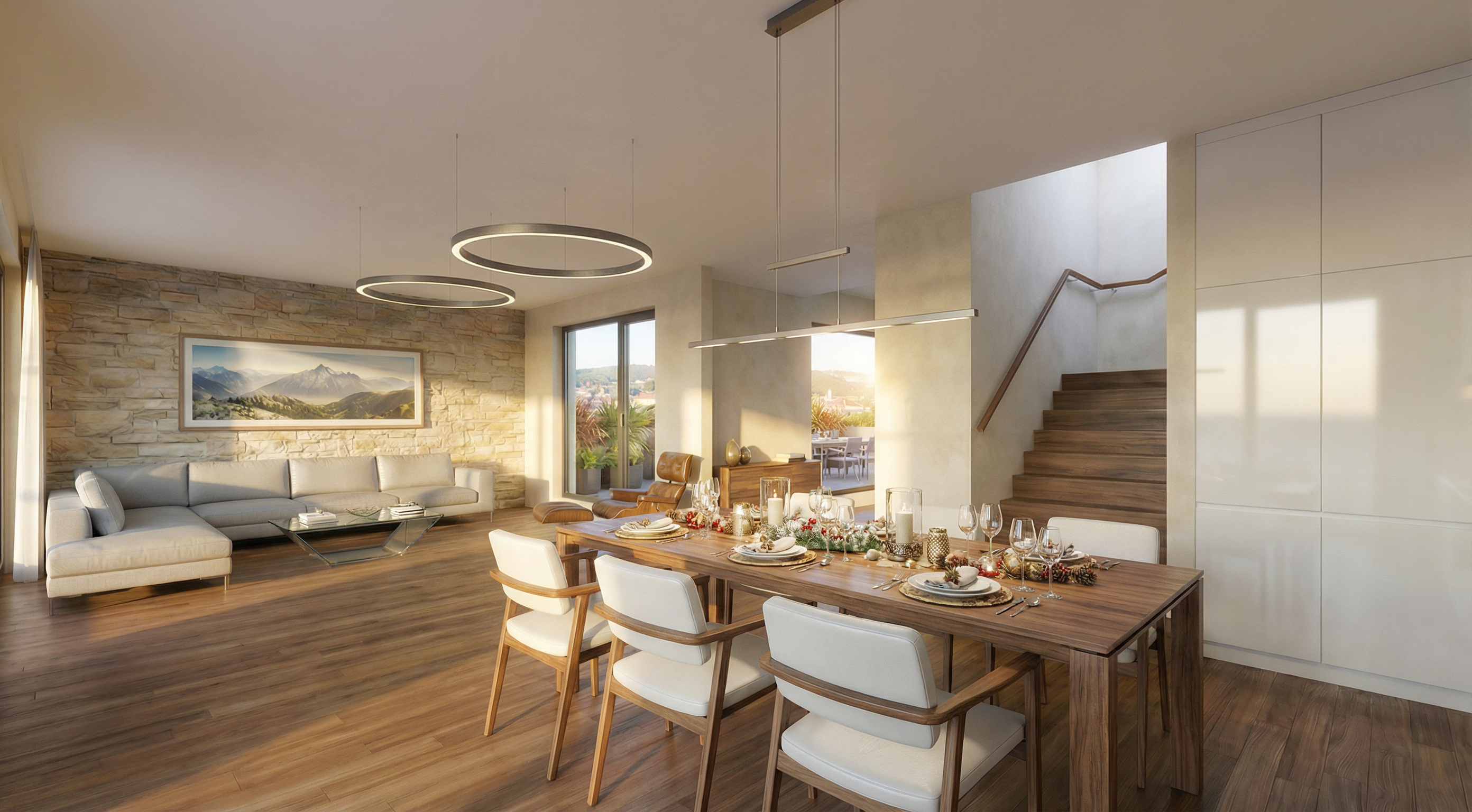 prompt render fotorealistico cucina luci accese create a highly photorealistic render of this exact kitchen model do not change layout proportions materials or composition maintain l shaped kitchen layout tall unit with built in ovens empty space under the cooktop wheelchair accessible area must remain open and unobstructed track lights on ceiling wall clock and wall light on the right lighting all lights on ceiling track lights turned on warm 3000k soft realistic light beams from each spotlight under shelf led lighting on the two open shelves on the back wall subtle glow under the shelves illuminating the textured backsplash warm ambient lighting not cold lighting mood evening indoor atmosphere soft shadows realistic light falloff no overexposure slight warm tone but natural material realism matte white base cabinets warm beige upper cabinets light textured backsplash stone or microcement effect subtle surface imperfections realistic reflections on oven glass black faucet with soft reflection natural wood or greyish oak flooring as modeled realistic contact shadows under cabinets accessible cooktop area important keep the space under the cooktop completely open no added cabinet no decorative filler no visual obstruction make it look intentional and well designed clean architectural finish this area must clearly communicate accessible design for wheelchair use without looking unfinished rendering quality ultra photorealistic ray traced shadows accurate reflections global illumination architectural photography realism