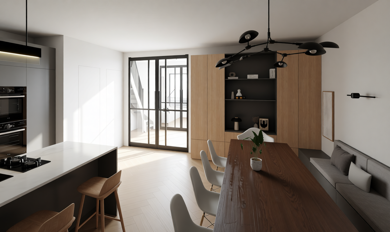 exterior shot ust take the feel and materials from the sample image without changing the original image