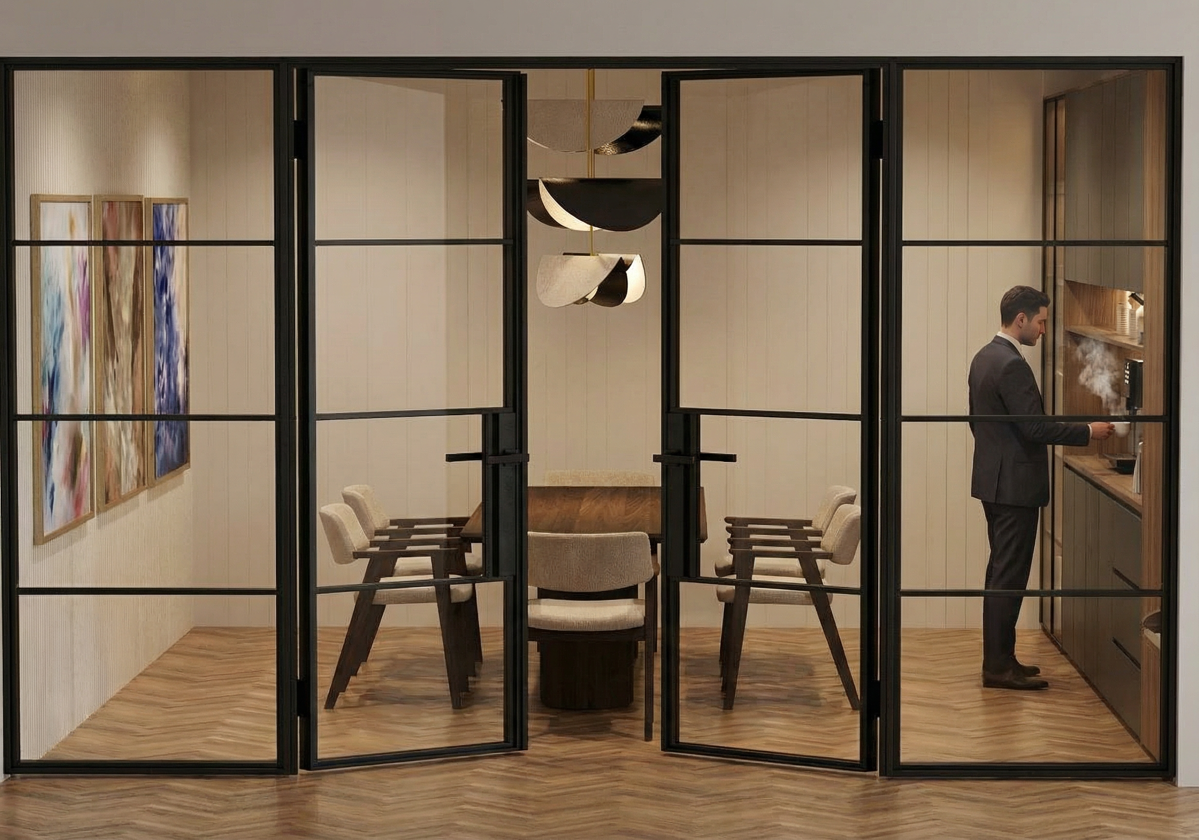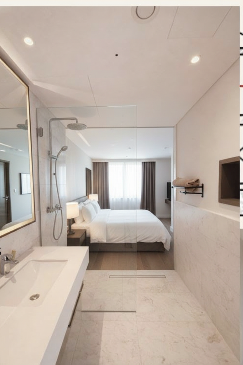 poner en el cristal muro que separa la habitacion un cristal frosty trnasparente el resto permanece