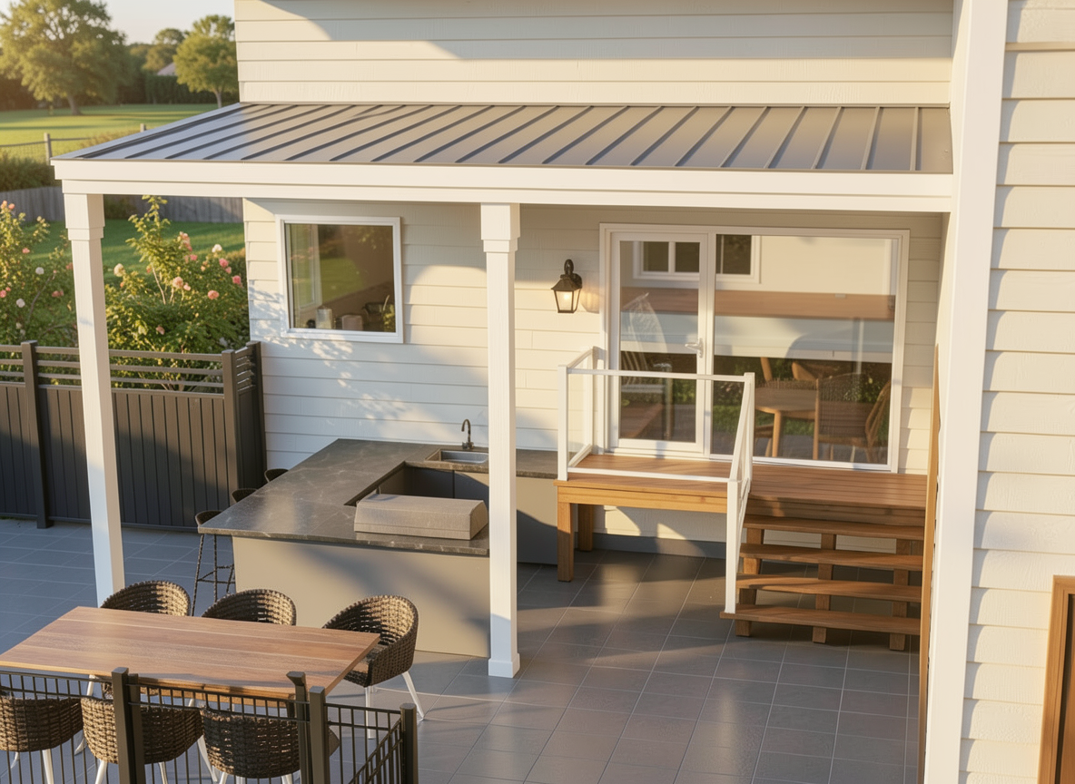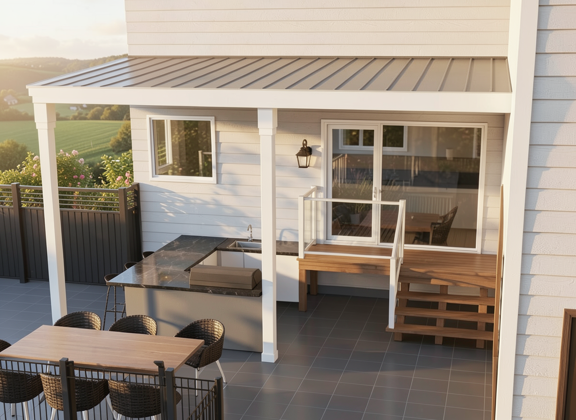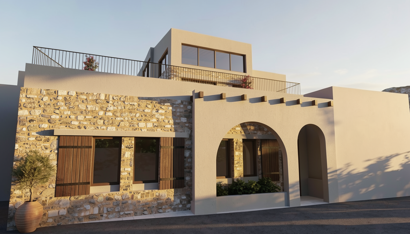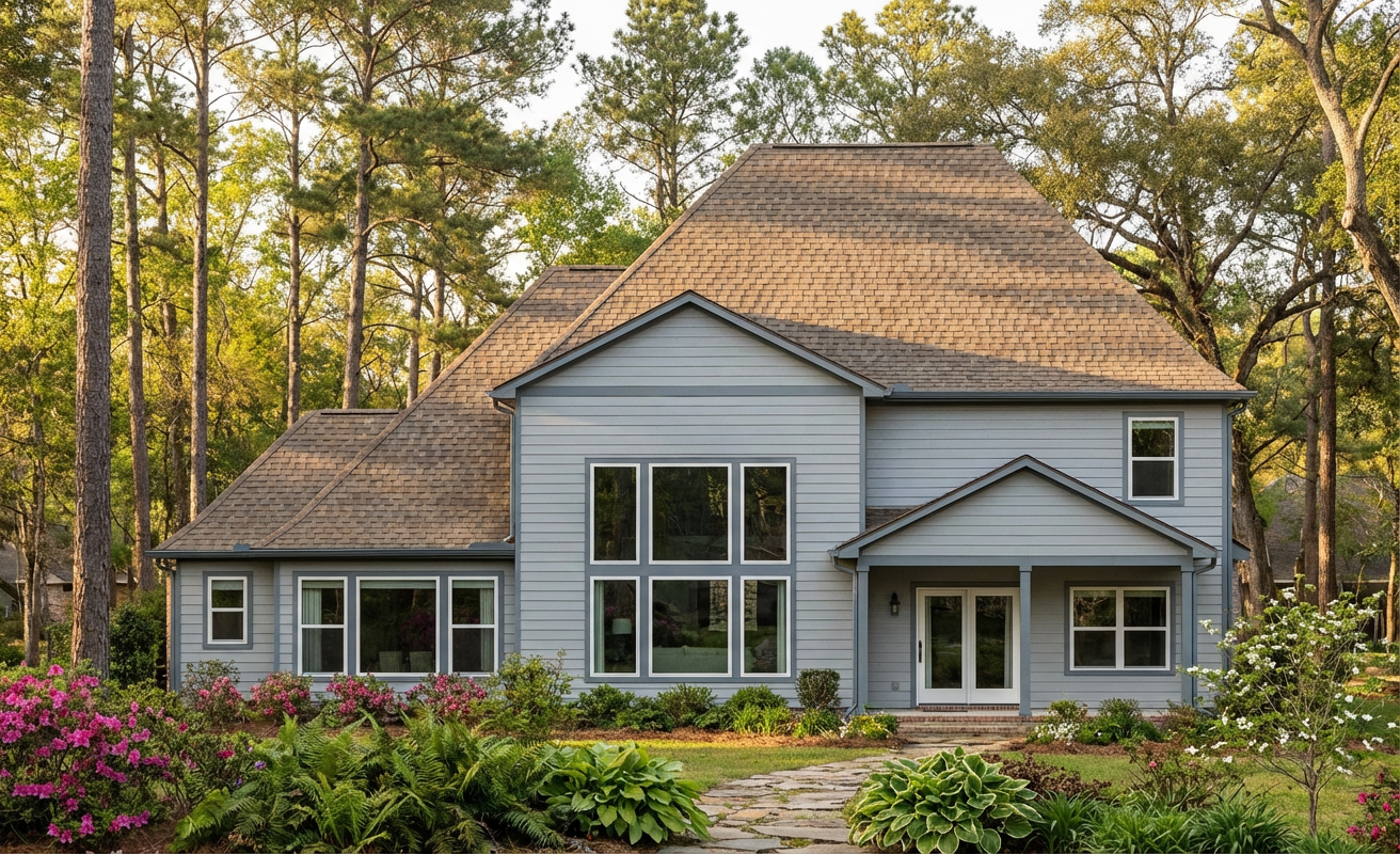 a hyper realistic image of a house late afternoon light