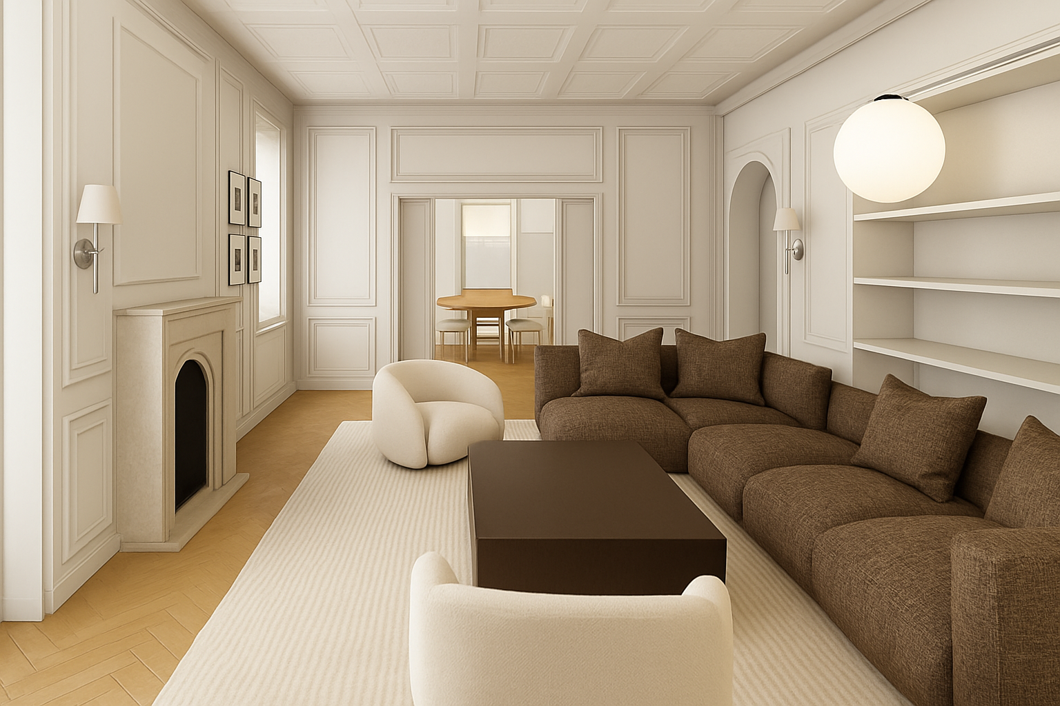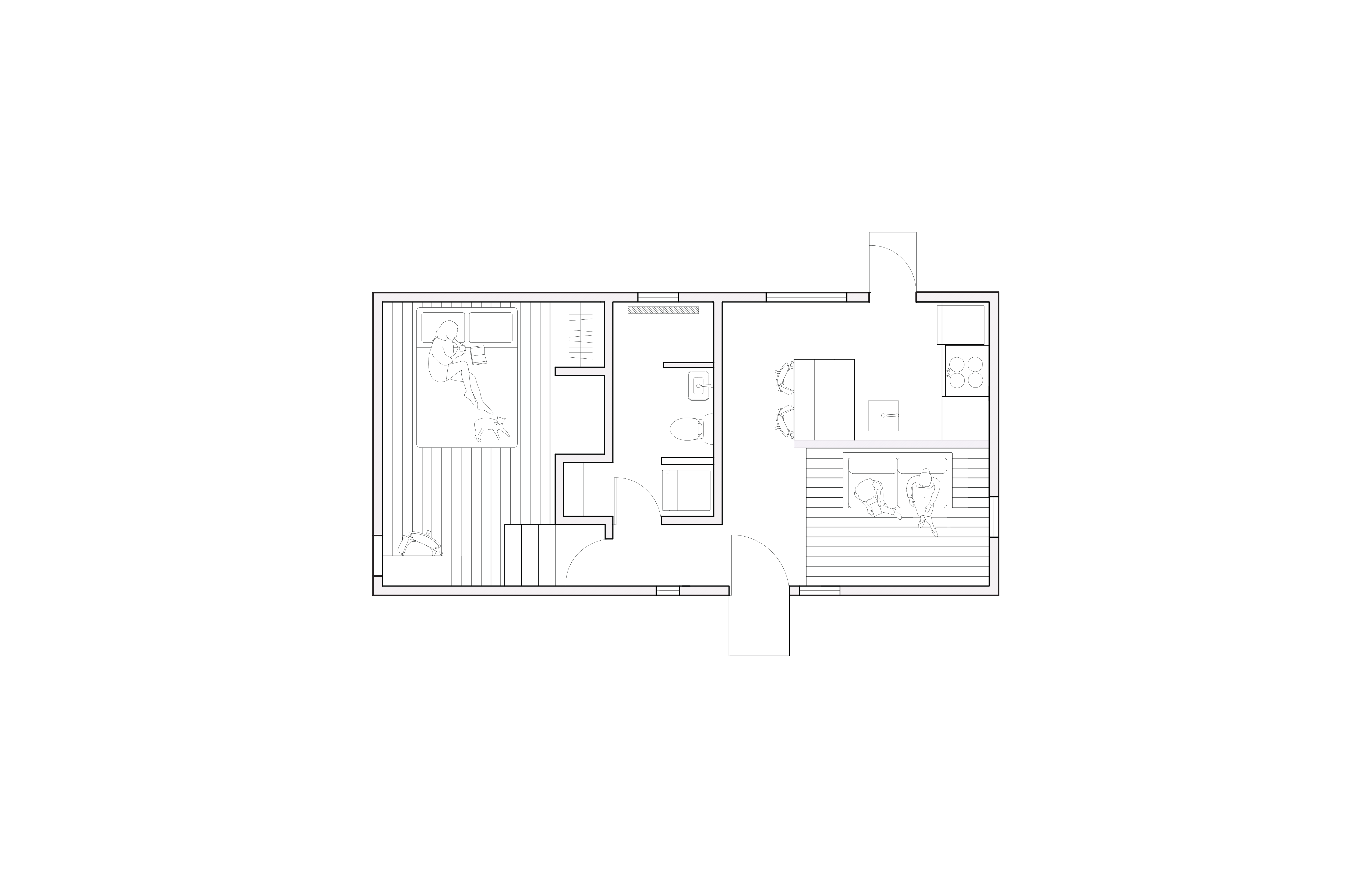 render this floor plan with concrete floors except the bedroom