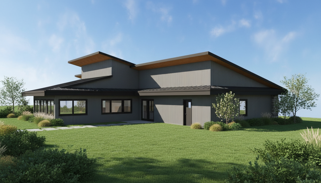 edit the image while keeping the architecture materials lighting and composition unchanged make the entrance feel more luxurious like a high end hotel entrance redesign the main entrance doors to look like luxury hotel doors with elegant tall glass doors and refined metal framing the design should feel premium and sophisticated while fitting within the existing opening modify the canopy by adding a defined metal edge profile along the perimeter the canopy edge should be finished in a metallic bronze warm brown metal tone keep all other elements exactly the same including the graphite gray perforated cladding crystal black granite entrance frame curtain wall lighting logo wall and proportions