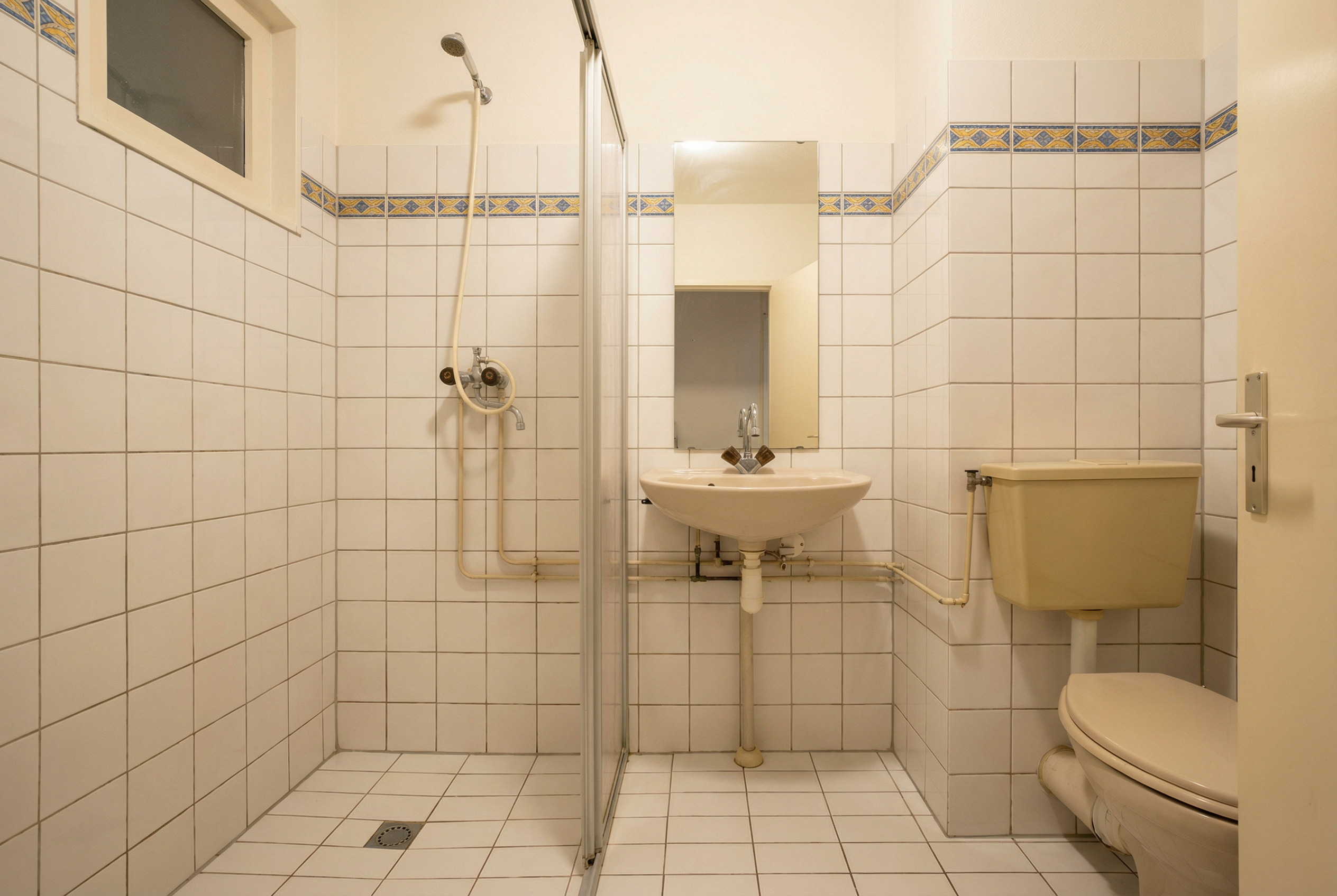exterior shot lass die perspektive genauso wie sie ist modernes neues bad makeover neues waschbecken elegante duschabtrennung aus glas moderner duscharmatur neue moderne wandh ngende toilette in wei