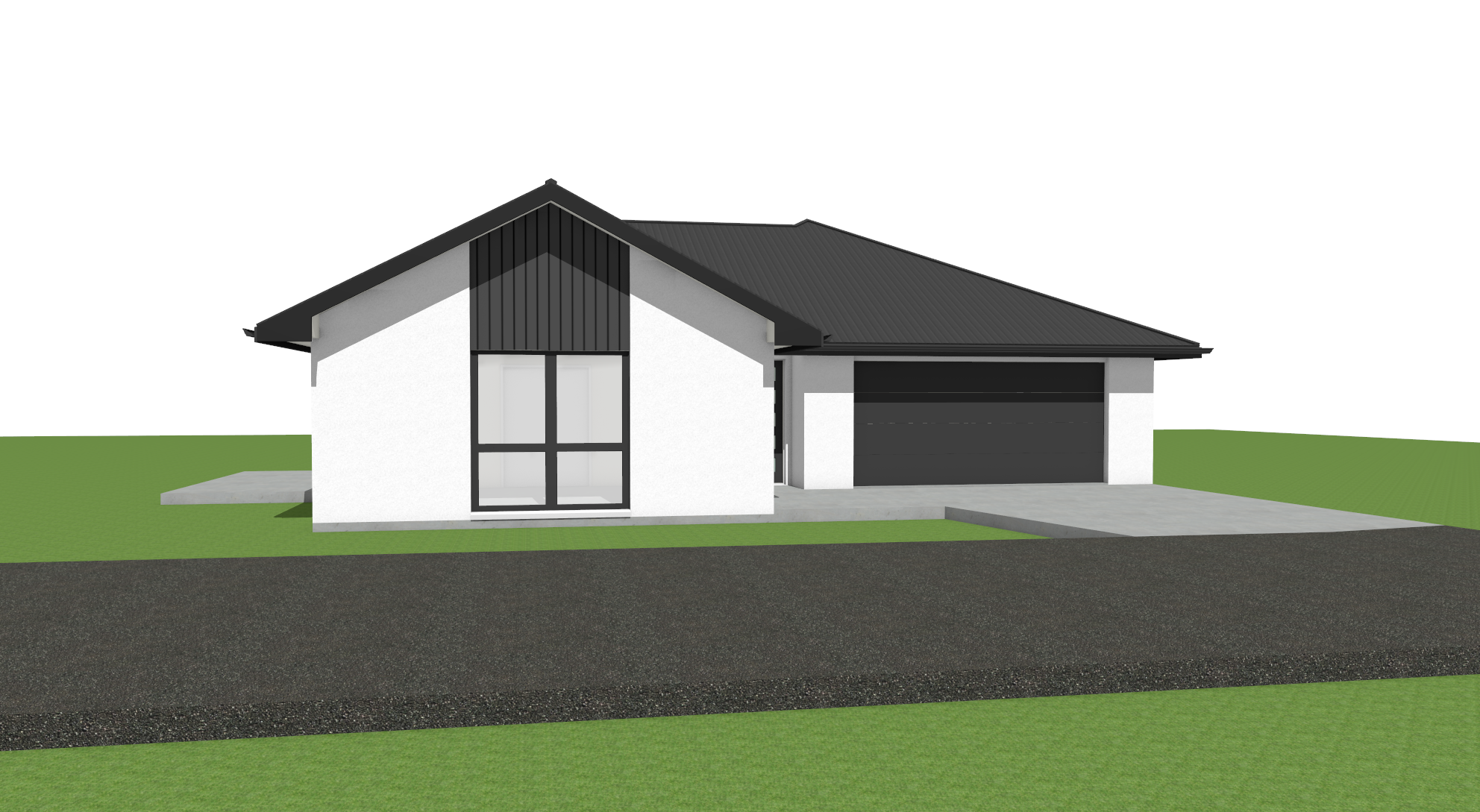 white plaster black wood with a concrete driveway and fencing short grass halswell new zealand