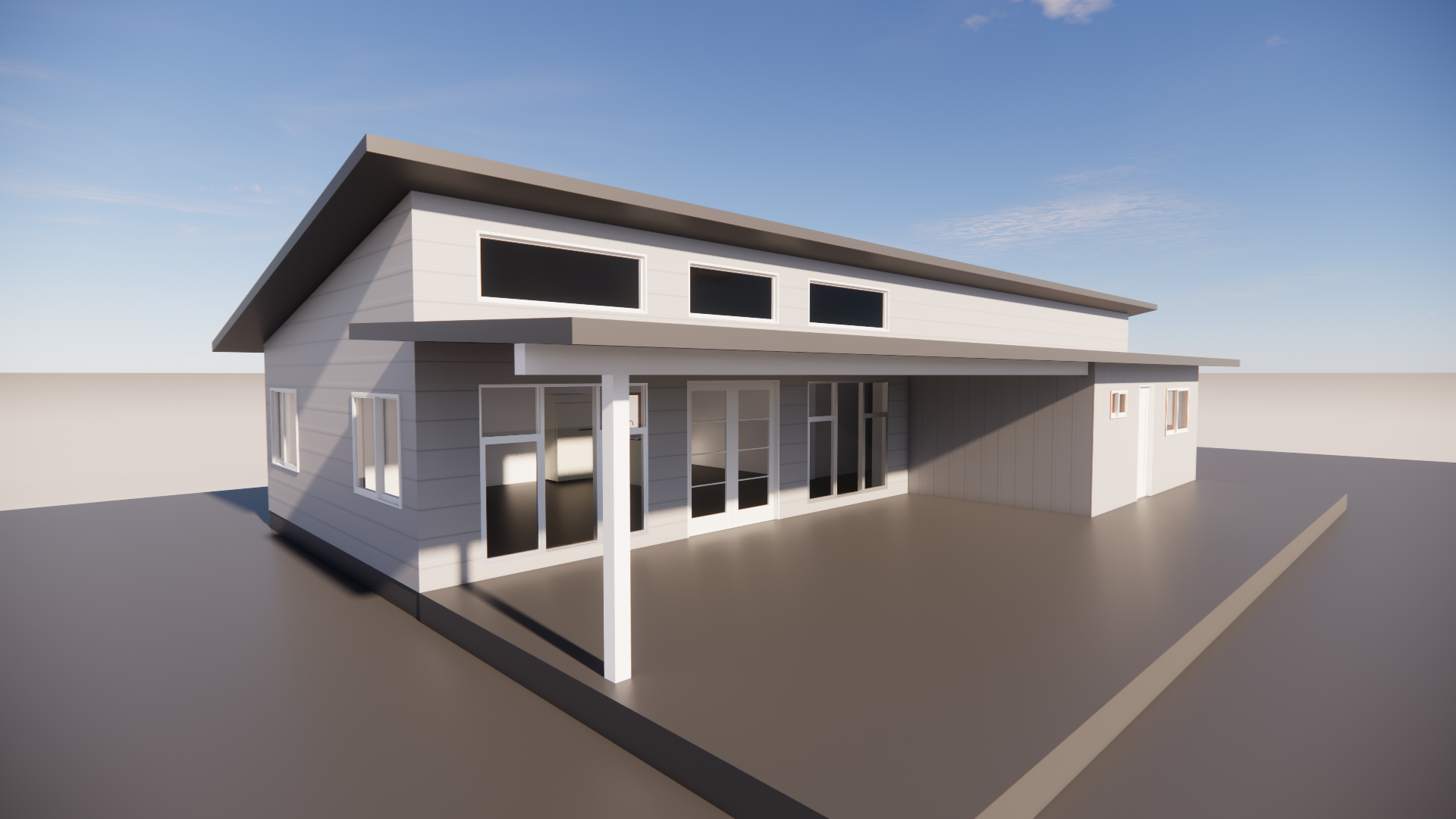 exterior shot keep original structure windows doors roofs and deck make nice wood deck and keep the original shape add a northen california hills in the background