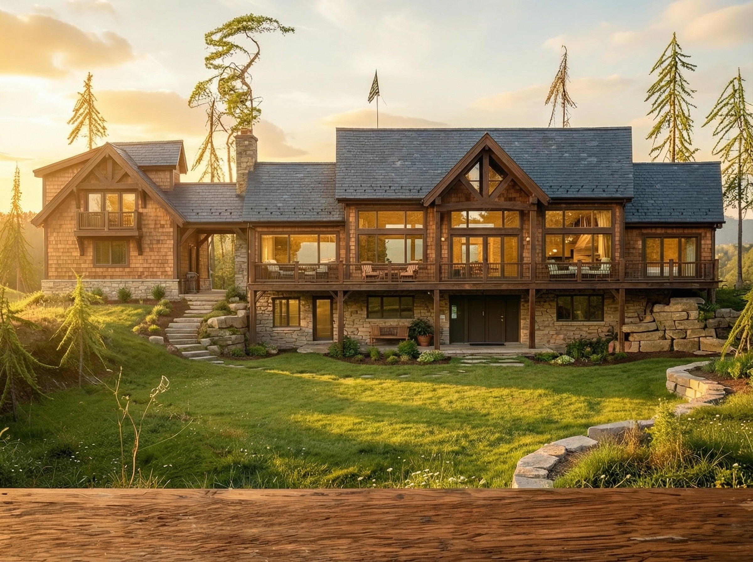 take away tree above chimney change cedar shake siding to horizontal siding make the building look more modern