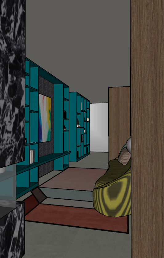 do not add sunlight add lights to shelves the back wall at the end is a mirror