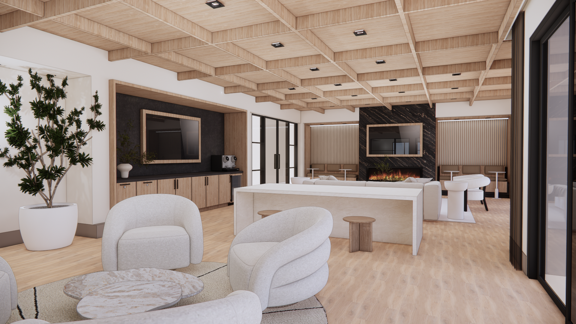 use the uploaded render as the exact base image maintain the original camera angle lens length perspective framing composition and spatial proportions exactly as shown do not alter architectural elements wall locations ceiling details millwork flooring layout window placement or built ins preserve all existing materials finishes textures paint colors tile stone wood tones and lighting design exactly as they appear maintain the same daylight direction shadow quality exposure and overall color temperature keep all furniture decor styling and layout exactly the same unless explicitly instructed otherwise do not reinterpret the design restyle the space modernize it or adjust proportions only modify the specific items that will be listed in the next prompt the goal is to enhance realism and material fidelity while preserving the original design intent 1 1 output should be photorealistic with natural material depth accurate reflections realistic fabric texture subtle imperfections and true to life lighting update the fabric of the accent chairs to a shade lighter