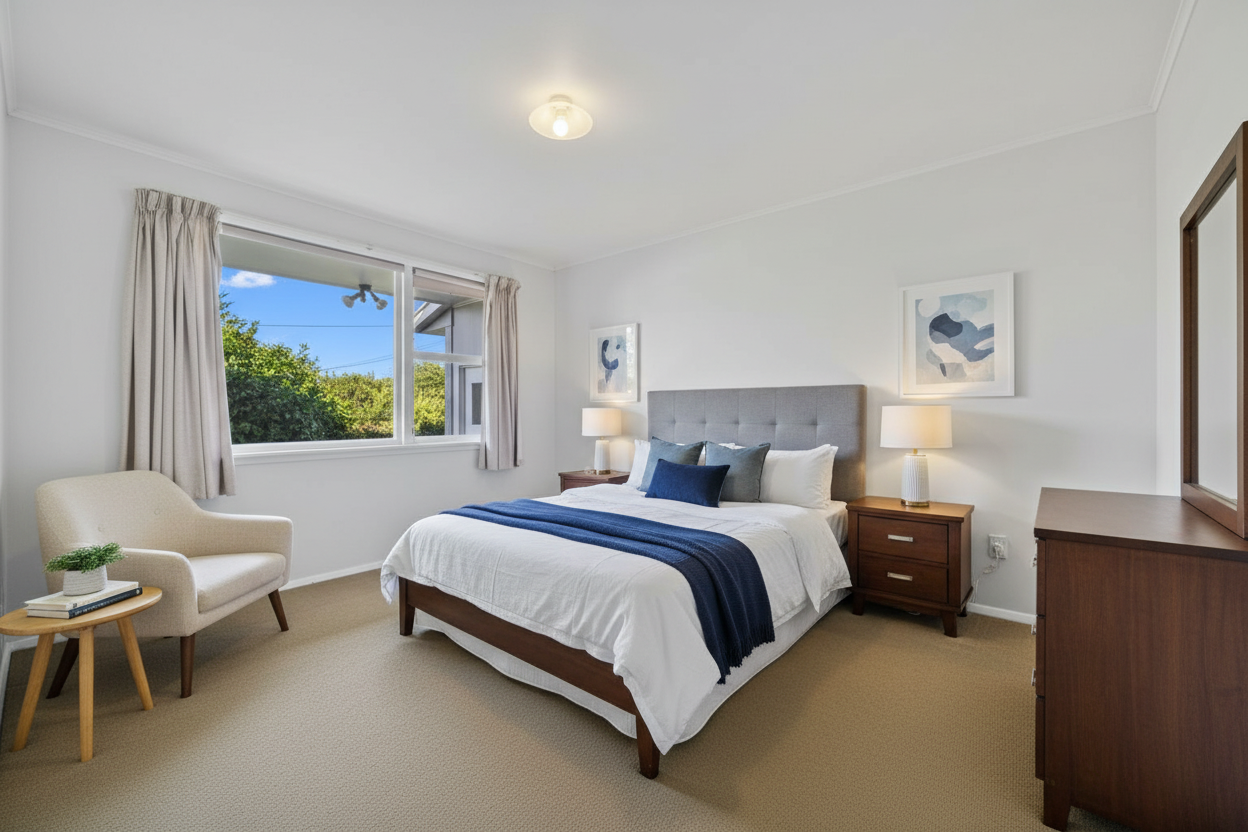 do not change features of room do not change carpet bed against wall