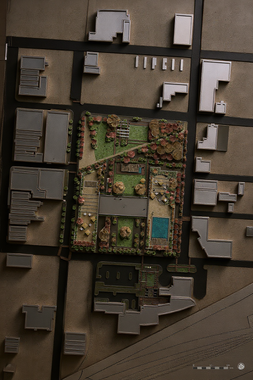 make couches built in lounges instead make the pool have a border of blue and green tile have the white stone surrounding the pool be crazy pave have the tree sketch become real