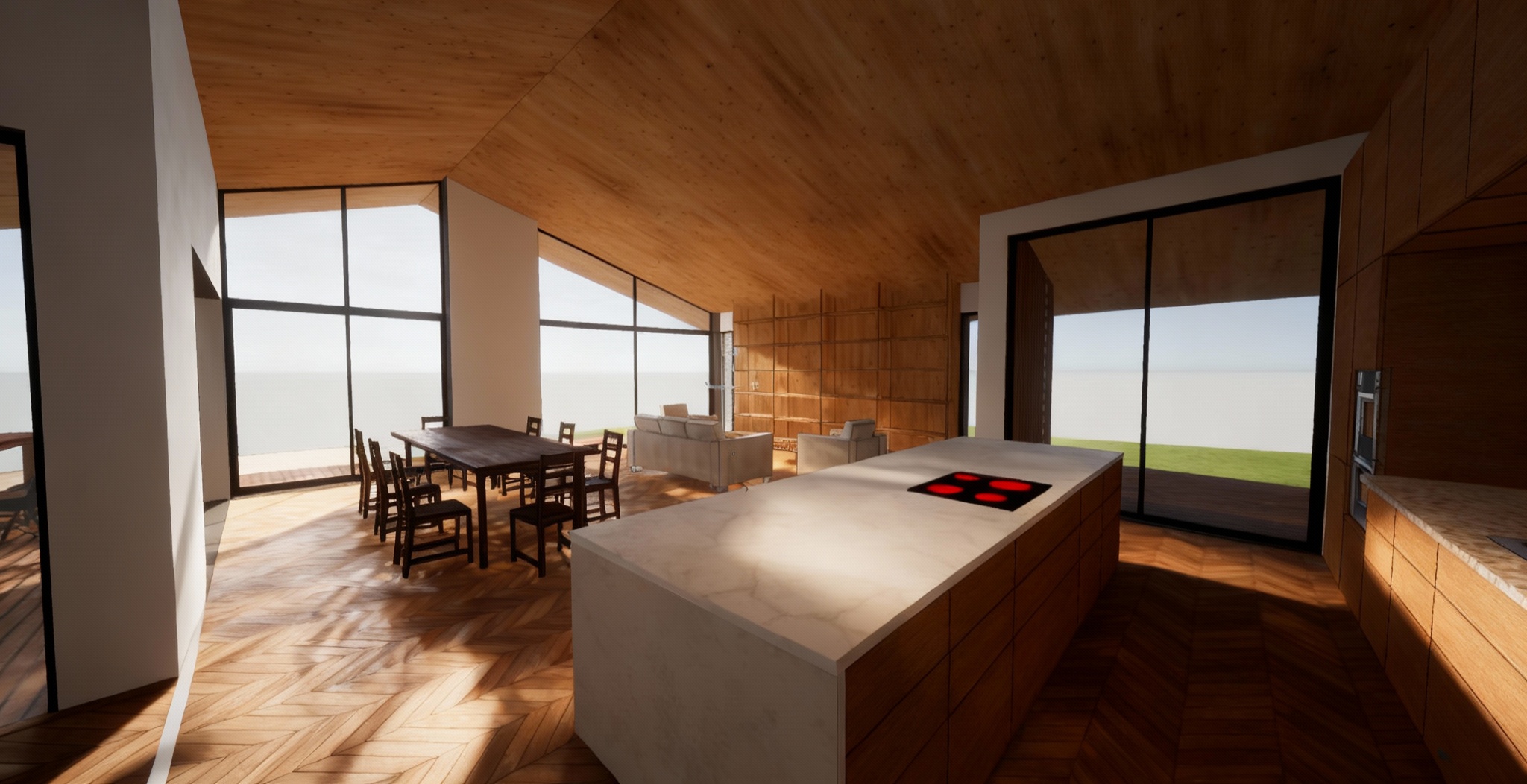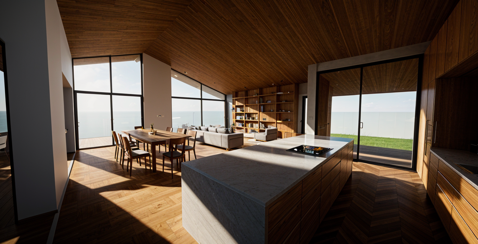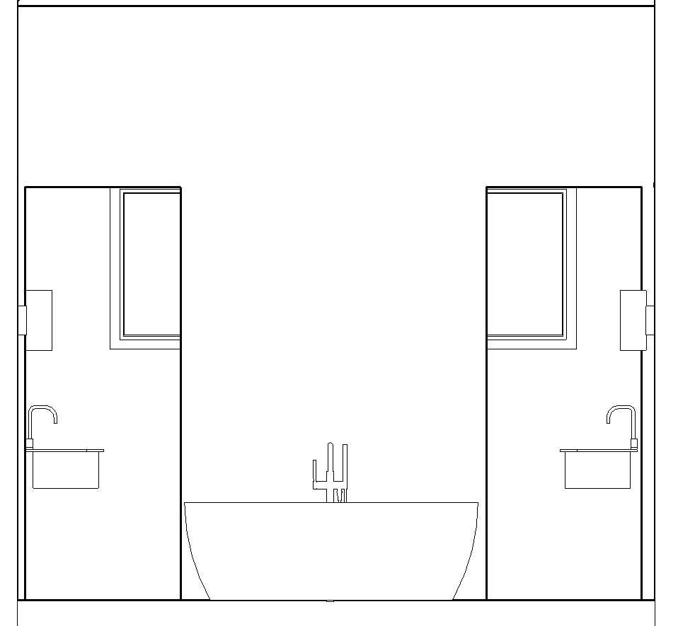 create farmhouse bathroom scene with a luxurious and serene atmosphere in the center place a sleek white freestanding bathtub with chrome taps two doors that lead to marble shower enclosure on either side include sinks with matching chrome faucets use a calming color palette soft white walls light gray flooring and accentuate with natural wood tones for any cabinetry add frosted glass windows in shower ensure a spa like atmosphere with soft diffused lighting and a few green potted plants for a touch of nature