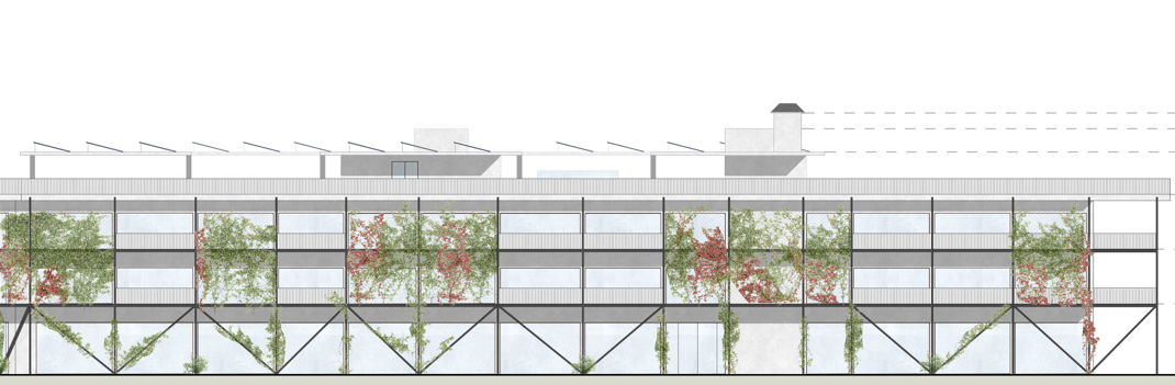 fai un render fotorealistico aggiungendo dettagli come l edera in facciata vegetazione di vario tipo e qualche persona mantieni forme e volumi