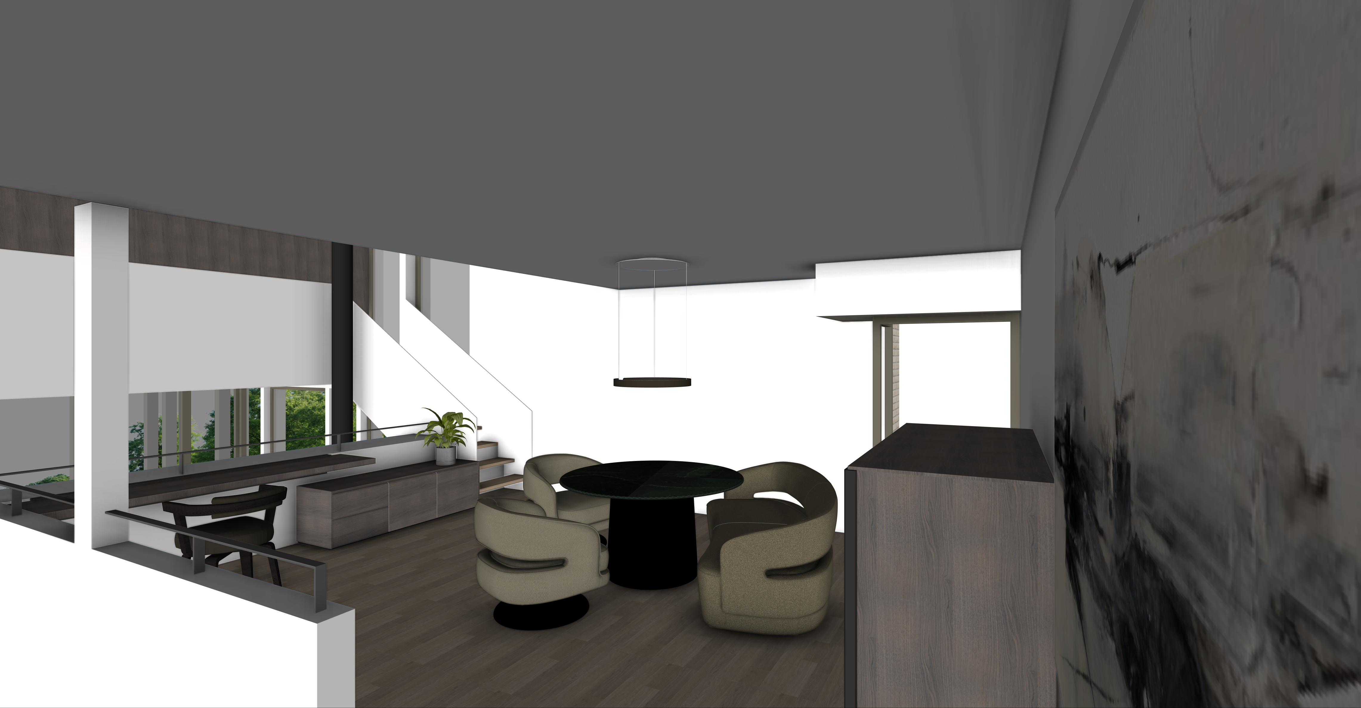 realistic interior shot warm natural daylight keep proportions and materials light oak floor round table green marble top matt burnished black feet