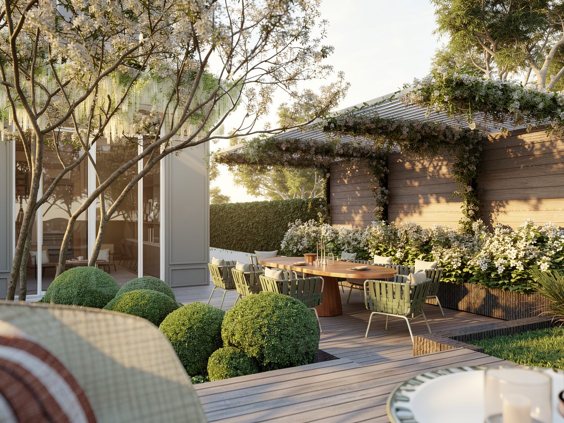 blend the picture into photo realistic view enhance the realistic texture and bright morning lighting maintain the elements and angle of the picture