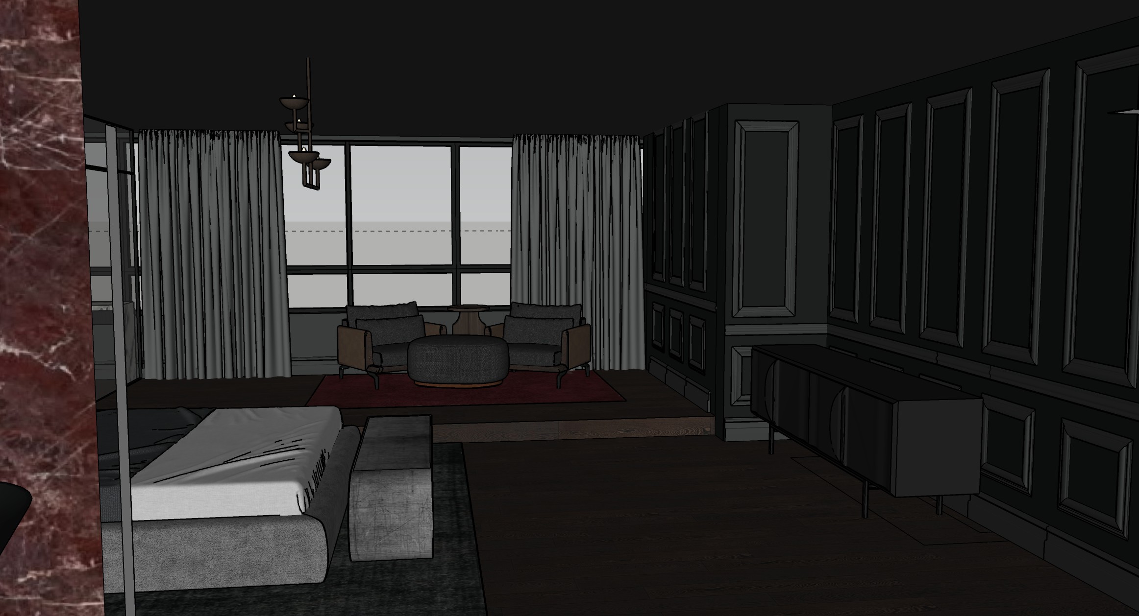 we re going for a gothic brutalism theme in the design please add subtle lighting as needed