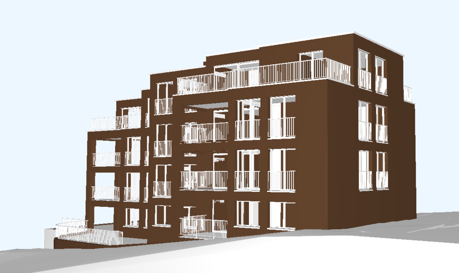 genau dieses rendering berarbeiten fotorealistisches foto exakt dieselbe perspektive und kameraposition wie das hochgeladene referenzbild 100 identische geometrie exakt gleiche anordnung exakt identische fensterpositionen mit gleichem ausblick durch die fenster weiches nat rliches tageslicht leicht schr g einfallende sonne durch die fenster r ume hinter den fenstern k nstlich ausleuchten sanfte realistische schatten realistische materialien echte texturen hochwertige oberfl chenreflexionen echte menschen echte autos pflanzen mit echten b umen und str uchern ersetzen hellgraue klinkerfassade gr ne fl chen mit wiese rasen und einigen b schen ersetzen sehr realistische umgebung rechts oben ist die strasse unten natur links unten ein grosser baum nat rlicher himmel mit leichter bew lkung im hintergrund der z richsee 40 meter weiter unten und 200 meter entfernt belebte szene mit menschen canon eos r5 35 mm festbrennweite f 2 8 nat rliche farbwiedergabe leicht warme farbstimmung golden hour feeling hyperrealistisch dslr qualit t raw aufnahme 8k aufl sung extrem scharf perfekte tiefensch rfe professionelle architekturfotografie