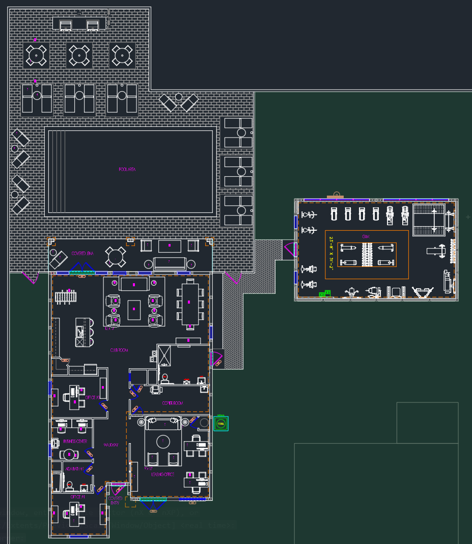 render floor plan furniture in white flooring in dark walnut gym flooring in grey do not add remove or change any elements in the plan