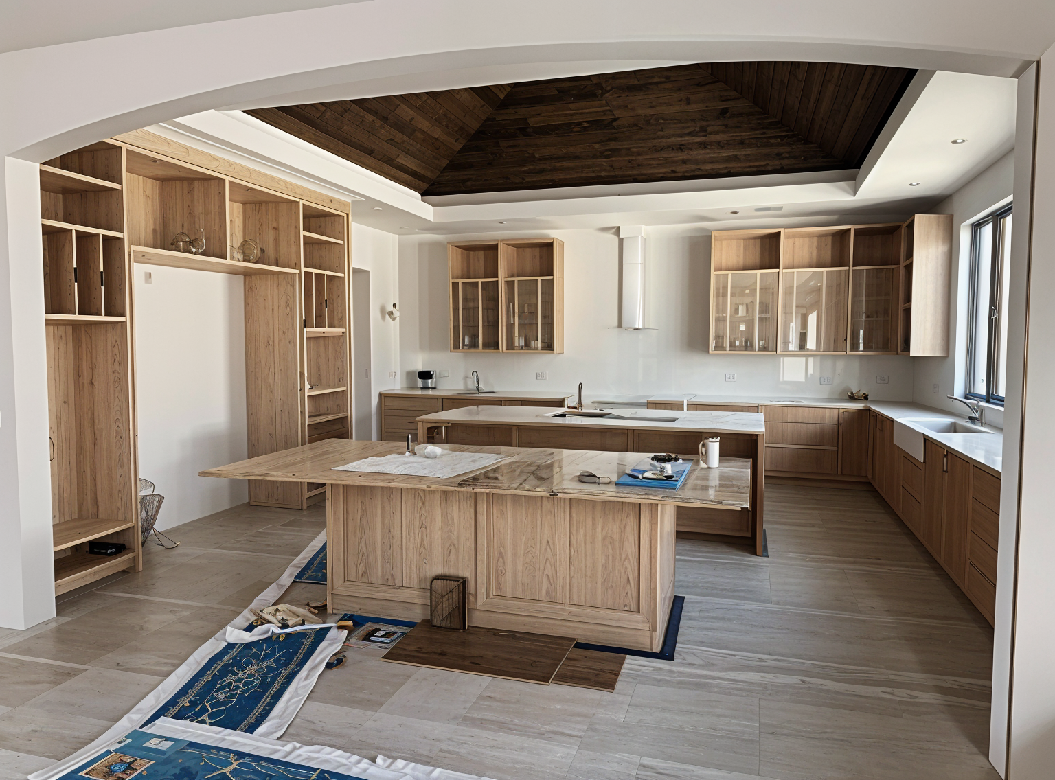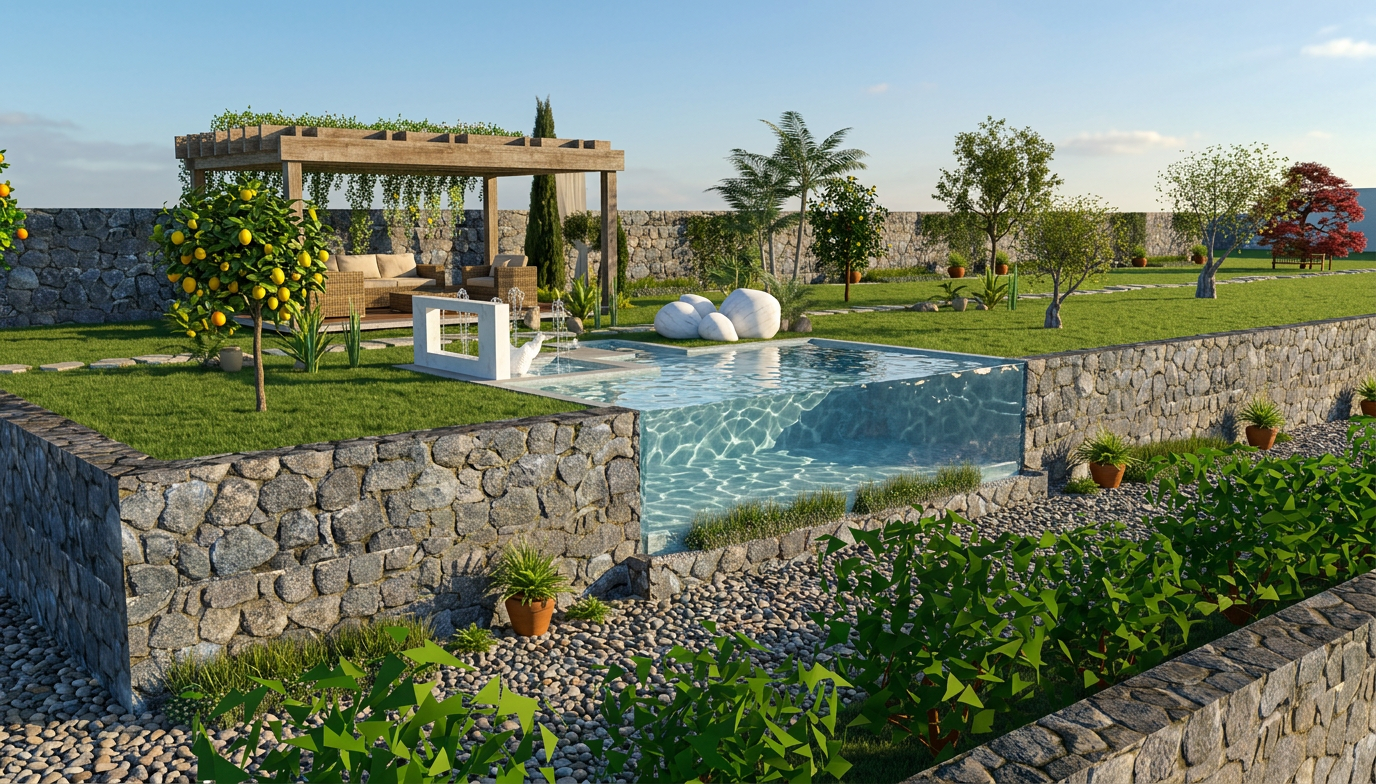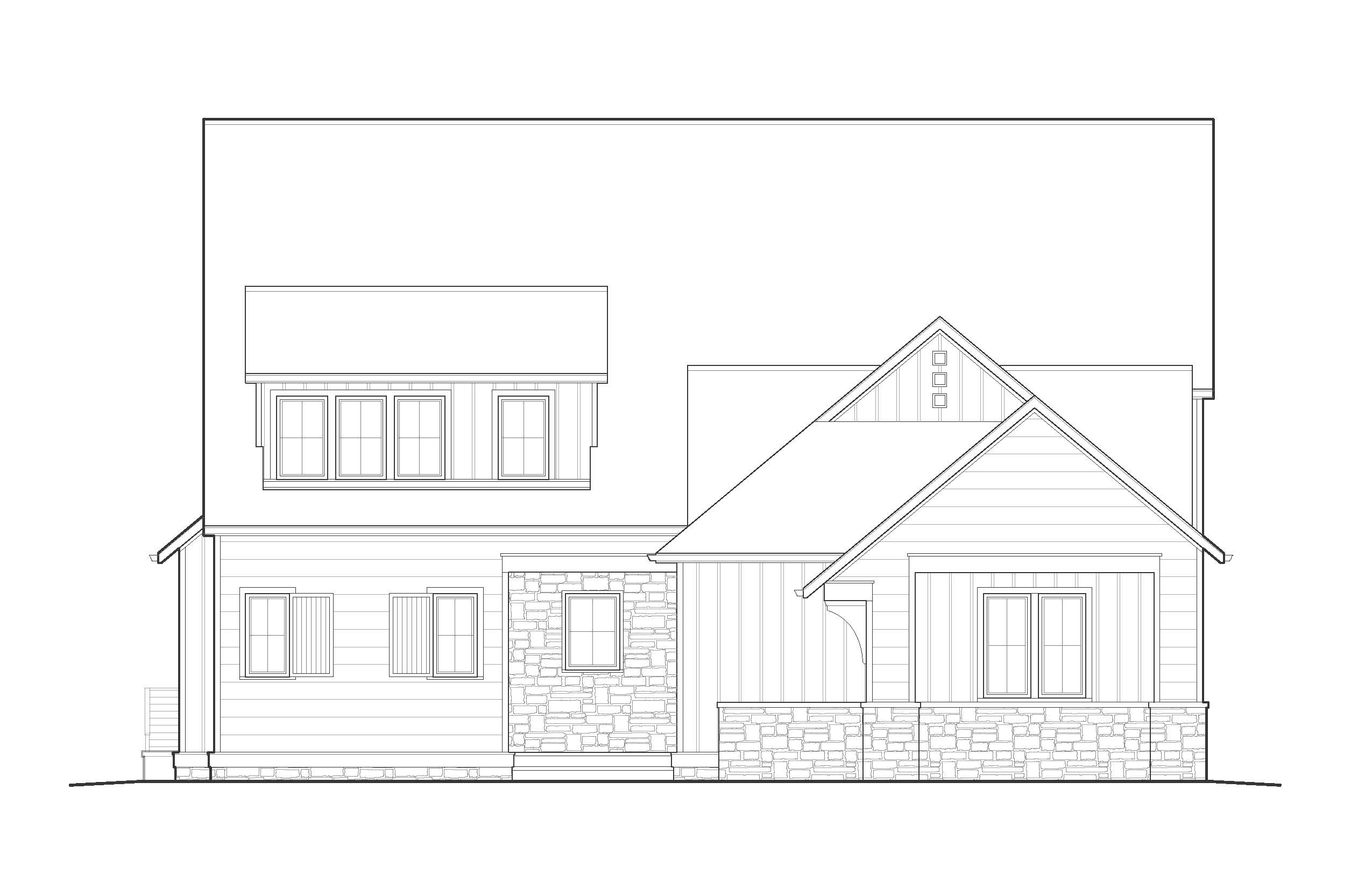 the uploaded image is a final built structure already constructed and must remain identical in form do not redesign reinterpret adjust refine or rebalance the architecture preserve the exact geometry proportions rooflines window locations wall alignments and structural relationships exactly as drawn maintain the precise camera position and perspective materials and artistic effects must be applied only to the existing surfaces without changing thickness alignment or proportions transform the cad elevation into a traditional hand drawn architectural presentation rendering created with fine ink linework and colored pencil shading similar to classic architectural presentation boards from the 1980s 1990s rendering style use precise architectural ink outlines for all building edges and details apply colored pencil textures and soft marker style shading over the linework allow slight variation in pencil pressure so the drawing feels human and hand rendered rather than digital keep the background mostly white to mimic a presentation board illustration building materials the central wall should appear as hand rendered irregular stone masonry with individually outlined stones and subtle colored pencil tones light gray tan and soft beige stone joints should be drawn with thin ink lines and gentle shadowing to create depth upper walls should appear as hand drawn cedar shake shingles with individual shingle patterning sketched lightly in ink and shaded with reddish brown colored pencil the roof should appear as a standing seam metal roof drawn with thin vertical seam lines and shaded in deep brown pencil tones windows should have dark trim with subtle reflections lightly colored with cool blue tones landscape illustration add loose hand sketched landscaping in colored pencil soft green shrub masses around the base of the stone wall lightly sketched ground plane using green pencil strokes include large loosely sketched trees behind the house drawn with layered colored pencil strokes in light green and dark green trees should appear soft atmospheric and slightly abstract not overly detailed presentation style maintain the hand rendered architectural illustration look include subtle shadowing beneath roof overhangs and around window openings using soft pencil shading keep the composition clean and balanced as if created for an architectural presentation board human scale include a minimum of two lightly sketched people placed naturally in the scene such as one on the balcony and one near the lower level the figures should be simple architectural scale silhouettes drawn in faint pencil not detailed portraits
