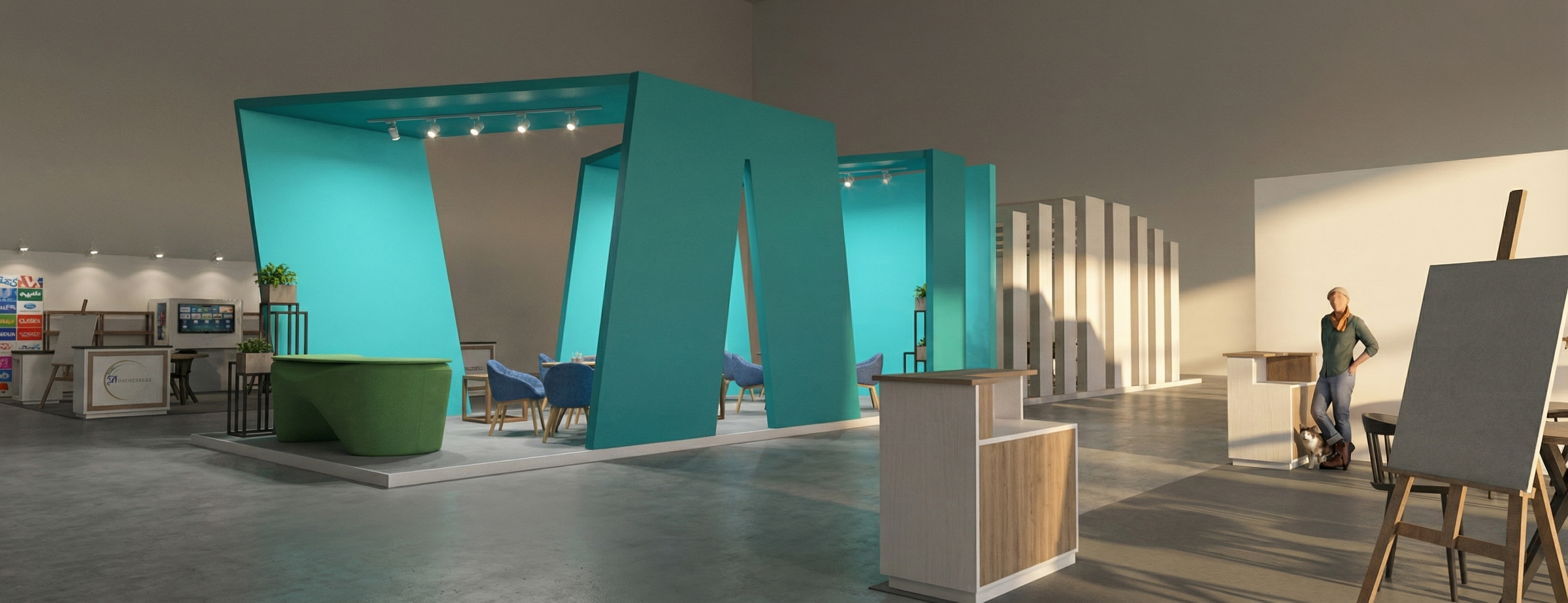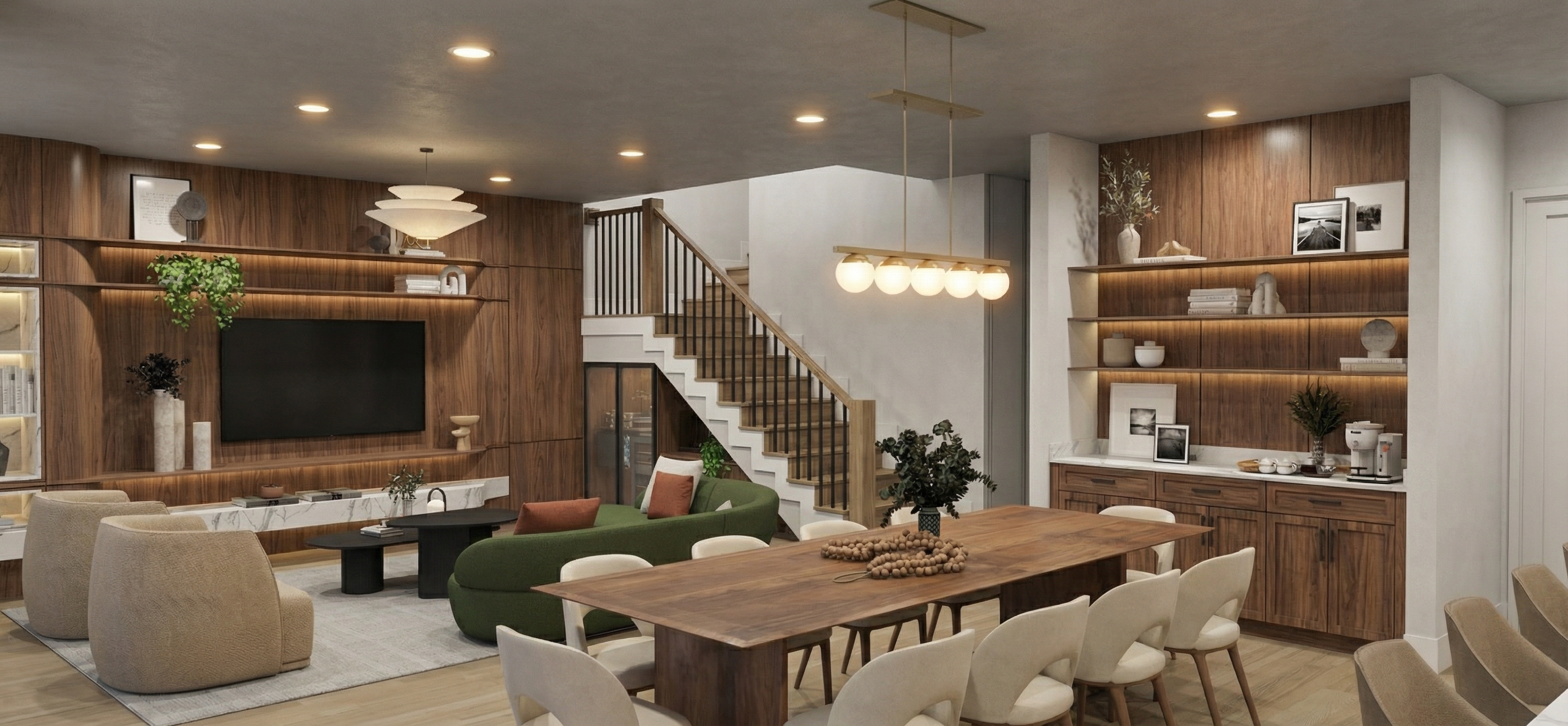 utilizing a lime green turquoise blue and off white color scheme update this living room to have a mid century modern style populate the room with a walnut tv stand a switchblade coffee table white vinyl sofa turquoise blue felt accent chair and a large house plant maintain the shiplap wall make the interior view look light and clean