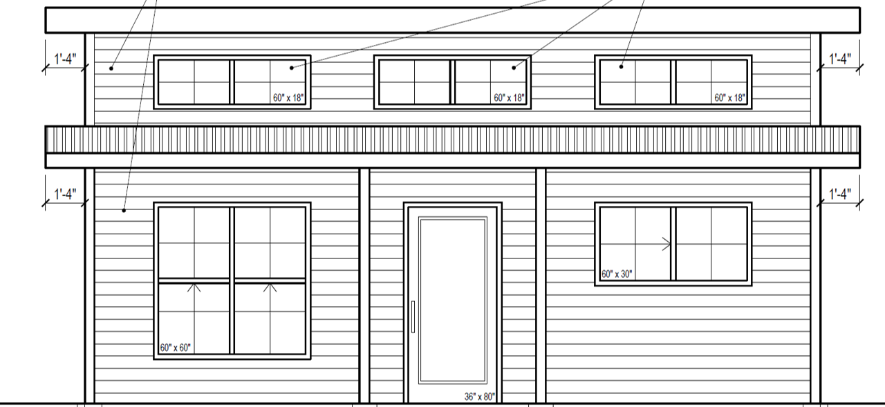 sustainable design exterior shot render this exterior front view of a small cottage style home on a slab foundation with a front porch and wood railing and wood roof supports add some grass and simple landscaping around the front porch add a small river with many luscious mature trees further in the background add a few clouds in a light blue sky architecture