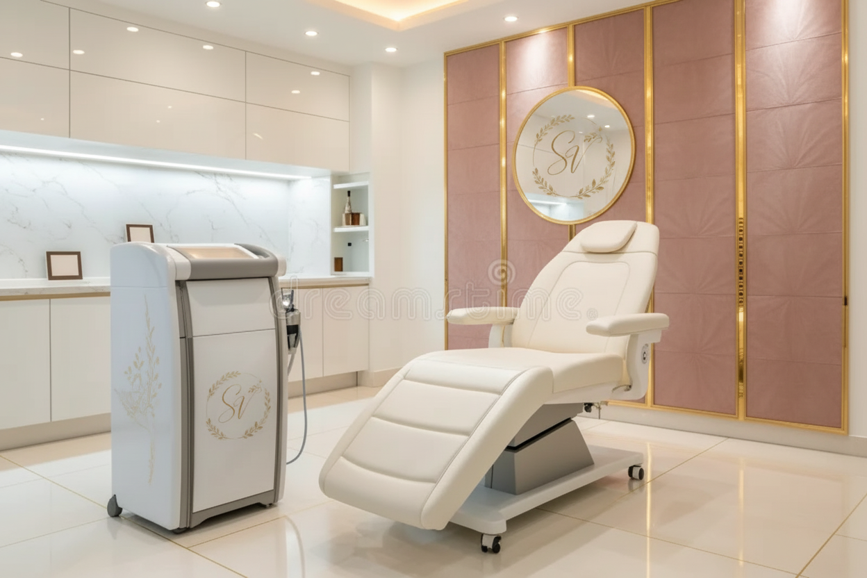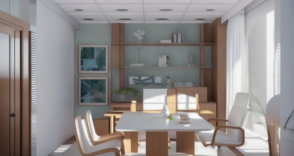 back wall is window with transparant logo also logo on the left wall and take the high cabinets out