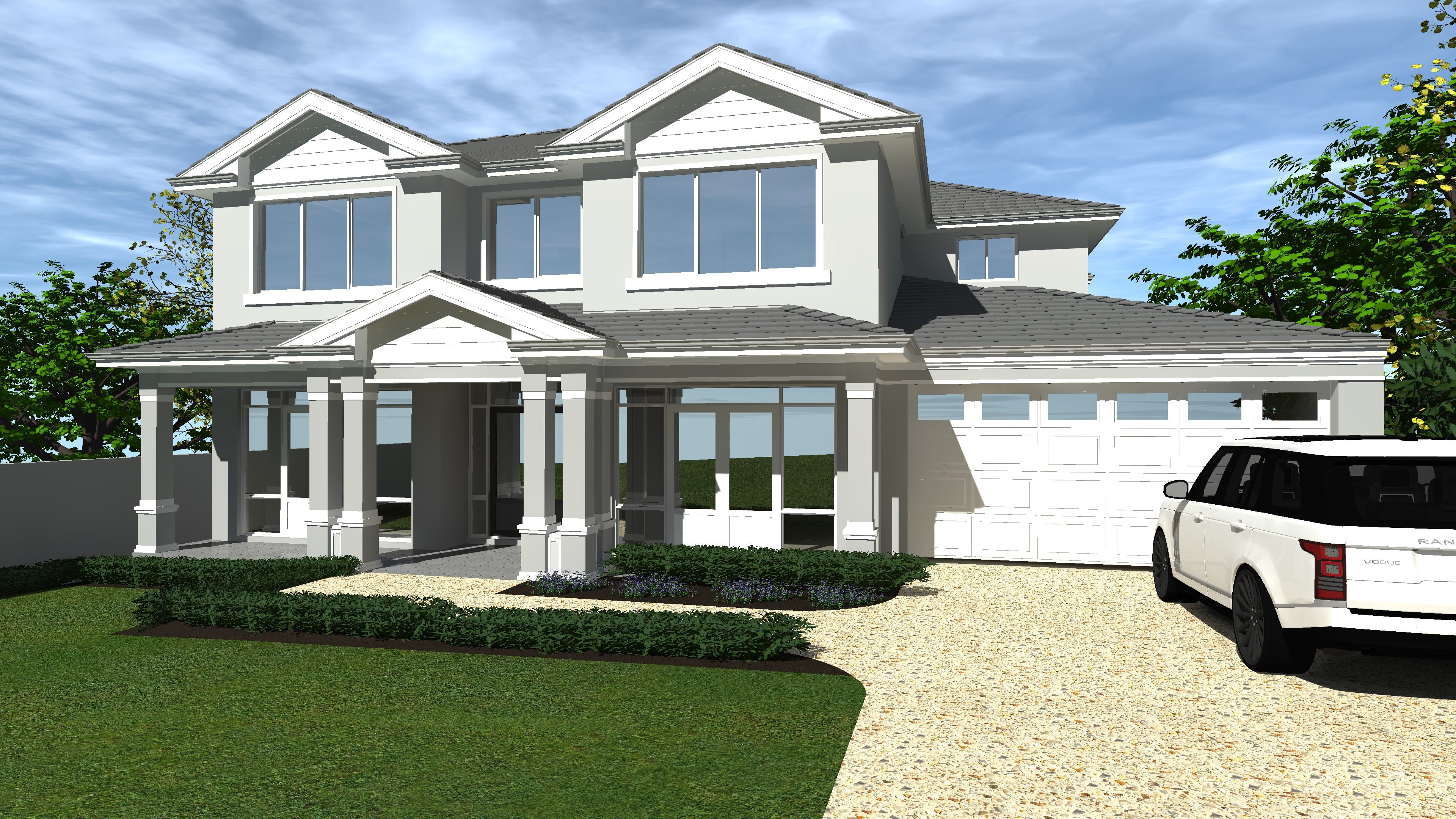 make this home elevation look more realistic use a traditional hamptons colour theme remove the window the the middle of the upper floor