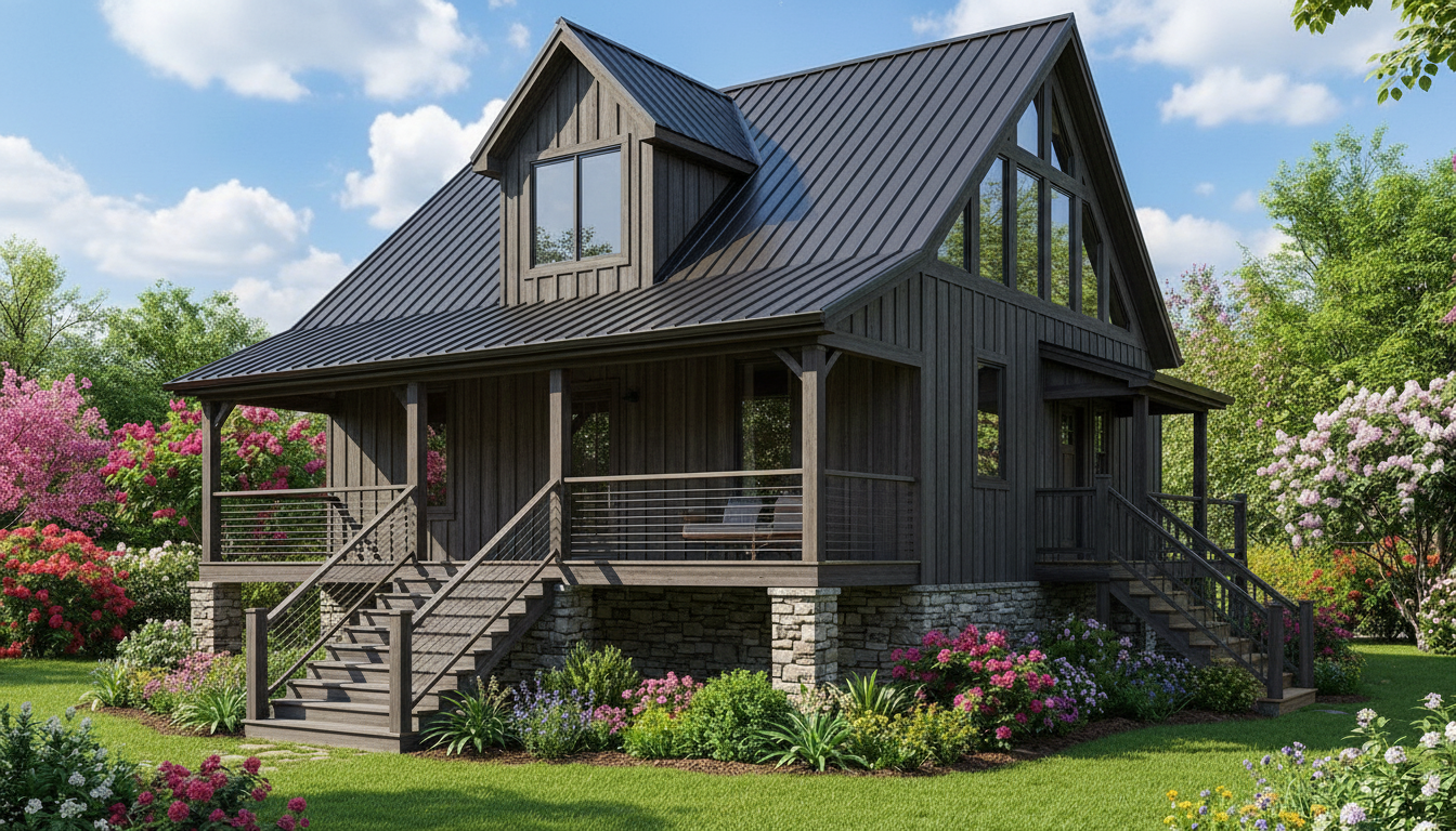 make modern version of this cabin change roof design change dormers to shed roof type dormers