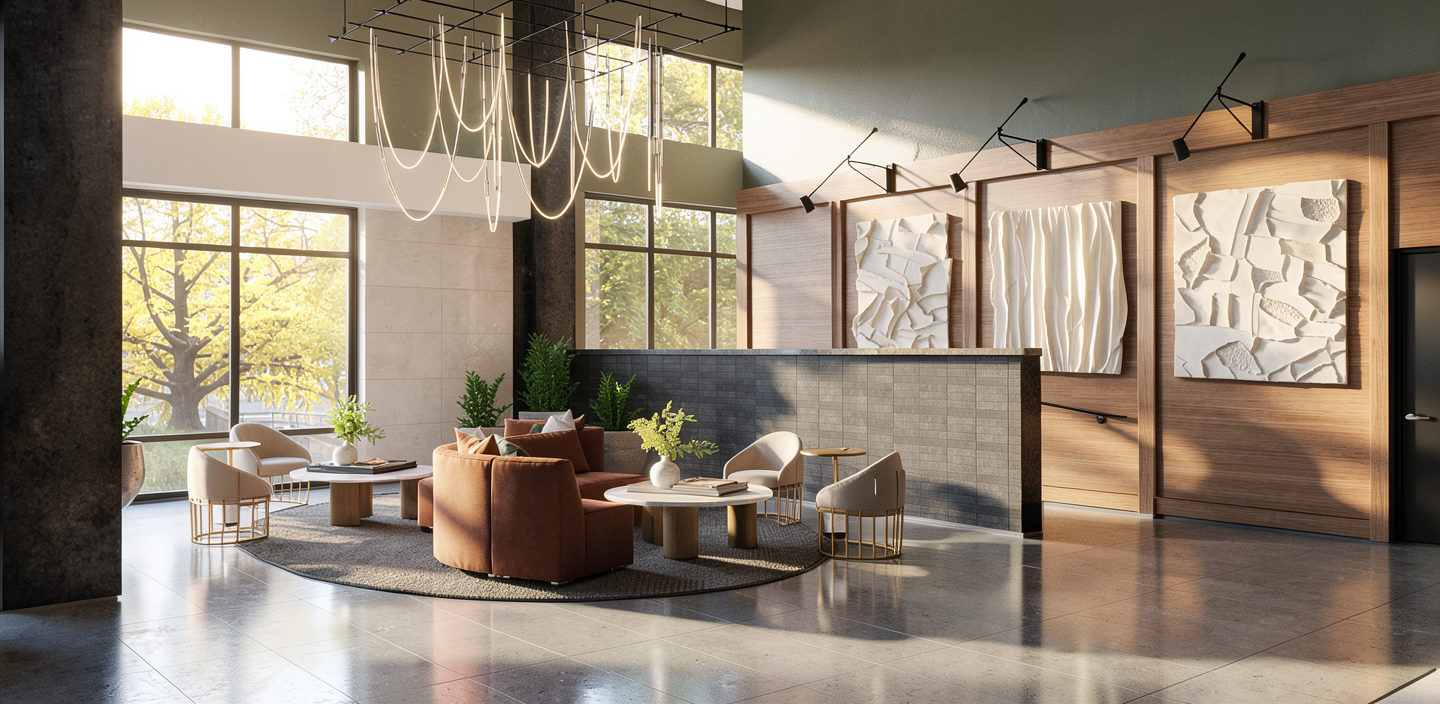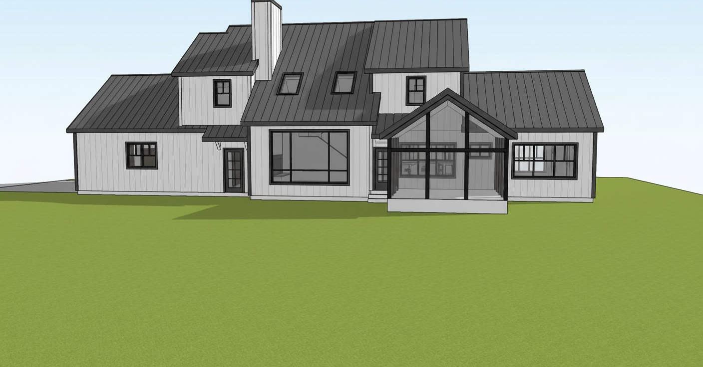 design a modern house with a clean and stylish design the exterior walls are immaculate white and medium gray giving a clean and sharp look the roof is dark charcoal gray the terrace cladding is natural light oak warm gray brick inserts on the walls the stairs leading to the terrace are smooth made of light concrete the atmosphere is peaceful and inviting with soft natural light illuminating the landscape under a partly cloudy sky the surrounding green vegetation is lush not floral giving the environment a natural beauty the background should be a small town with gray roofed family houses with several central european plants in the garden the sky is more cloudy with filtered lights the foreground of the stairs is a free grassy lawn the quality of the render is cinema 4d rendring