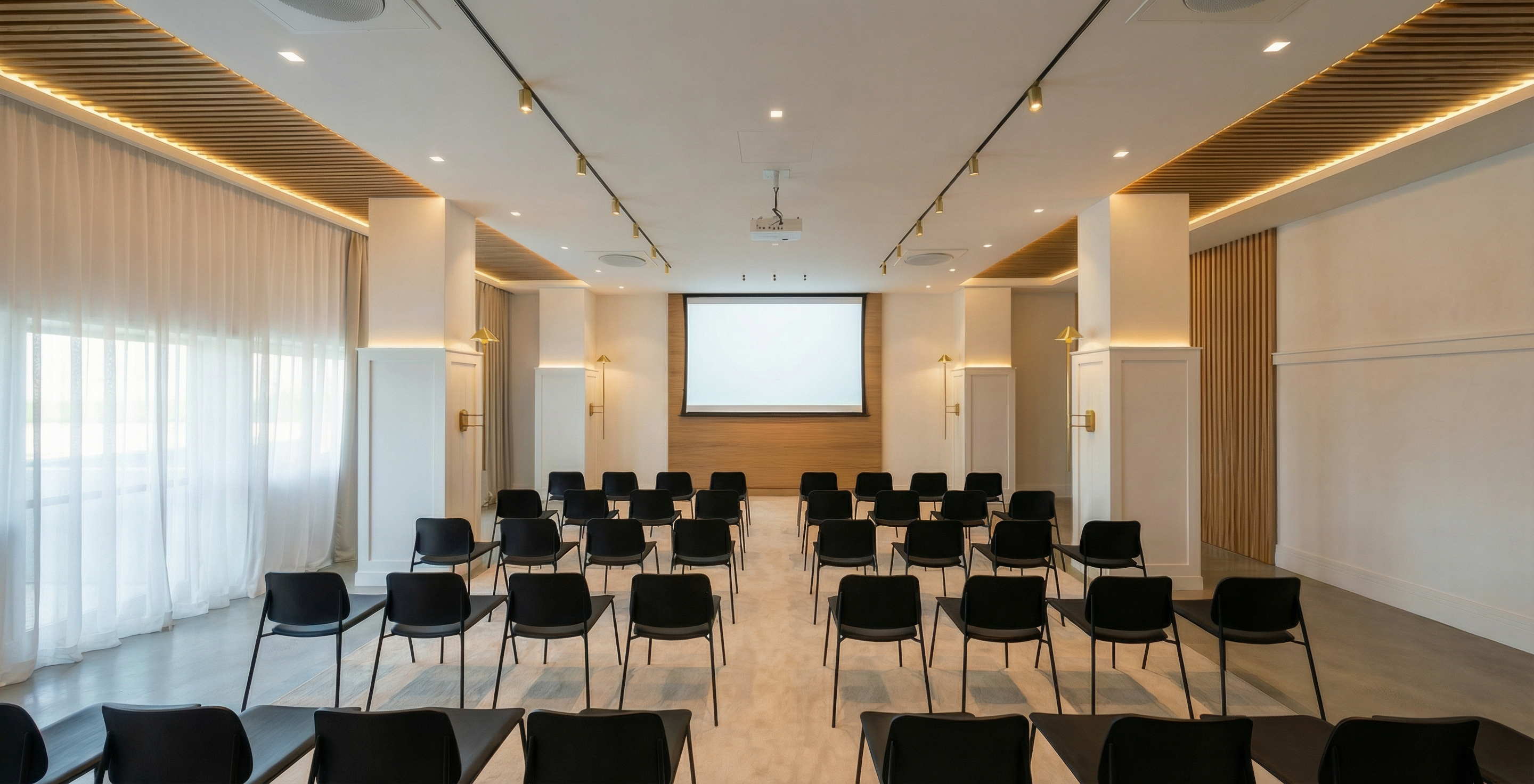 at the top in front of the green building a white mobile home with a wooden deck front promontory from the promontory a path winds down at the bottom of the slope a clearing of flat land with a stone circle for people to sit the road is paved with brown gravel