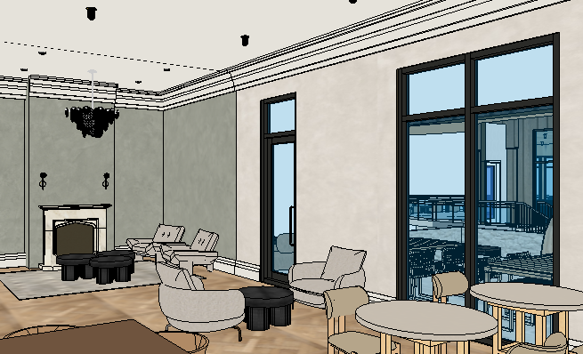 enhance this rendering to be more photorealistic while keeping all original colors materials layout and composition exactly the same do not change any furniture finishes or background elements preserve the original camera angle and geometry insert the provided pasted mirror image above the fireplace scaled and positioned realistically and proportionally to the wall ensure it aligns naturally within the scene update the lighting fixtures to a brass finish only keeping their exact shape and placement unchanged improve lighting quality with soft natural shadows subtle reflections and balanced exposure increase sharpness and realism without altering the design