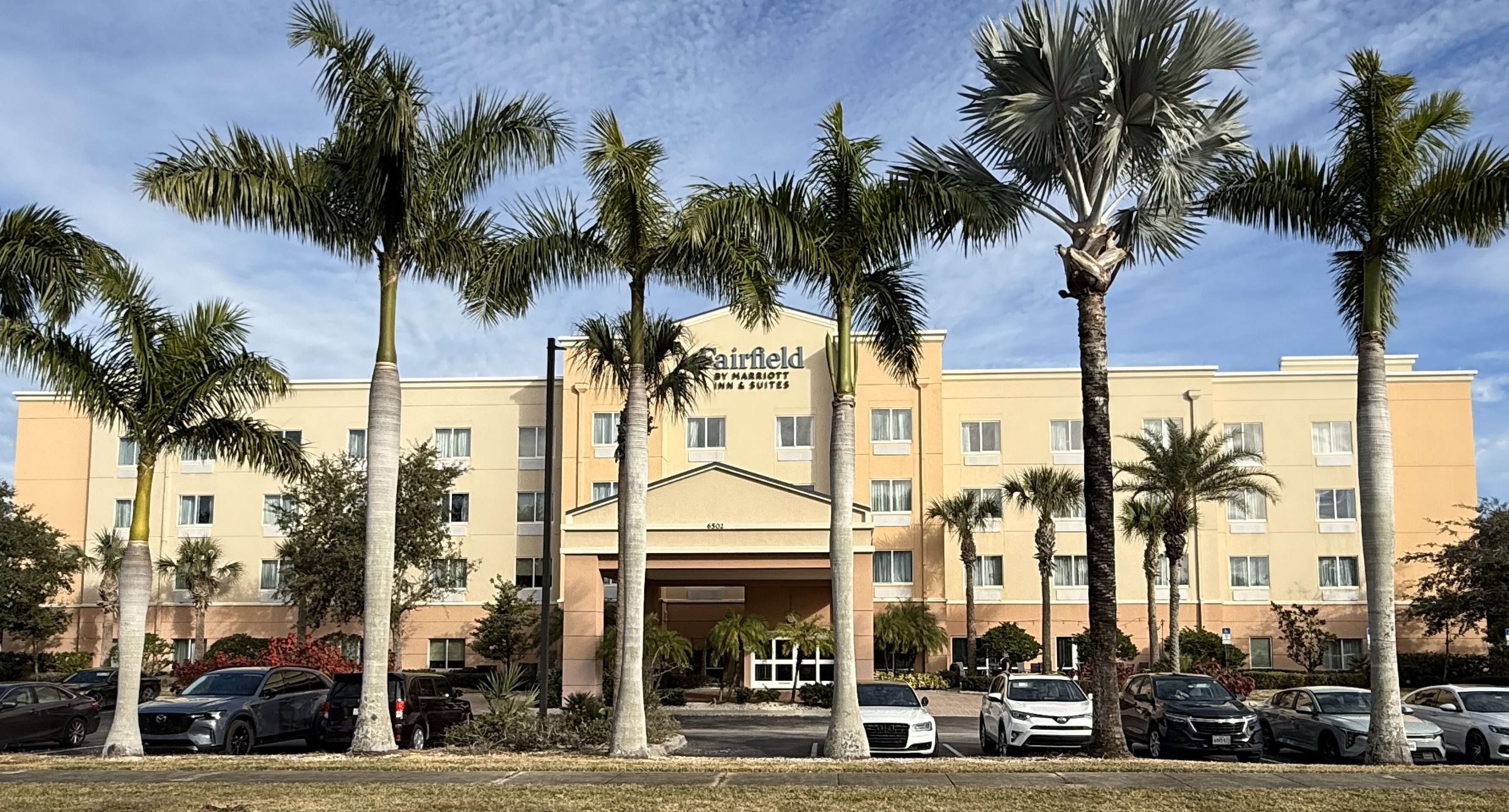 remove palm trees in the front and parking lot